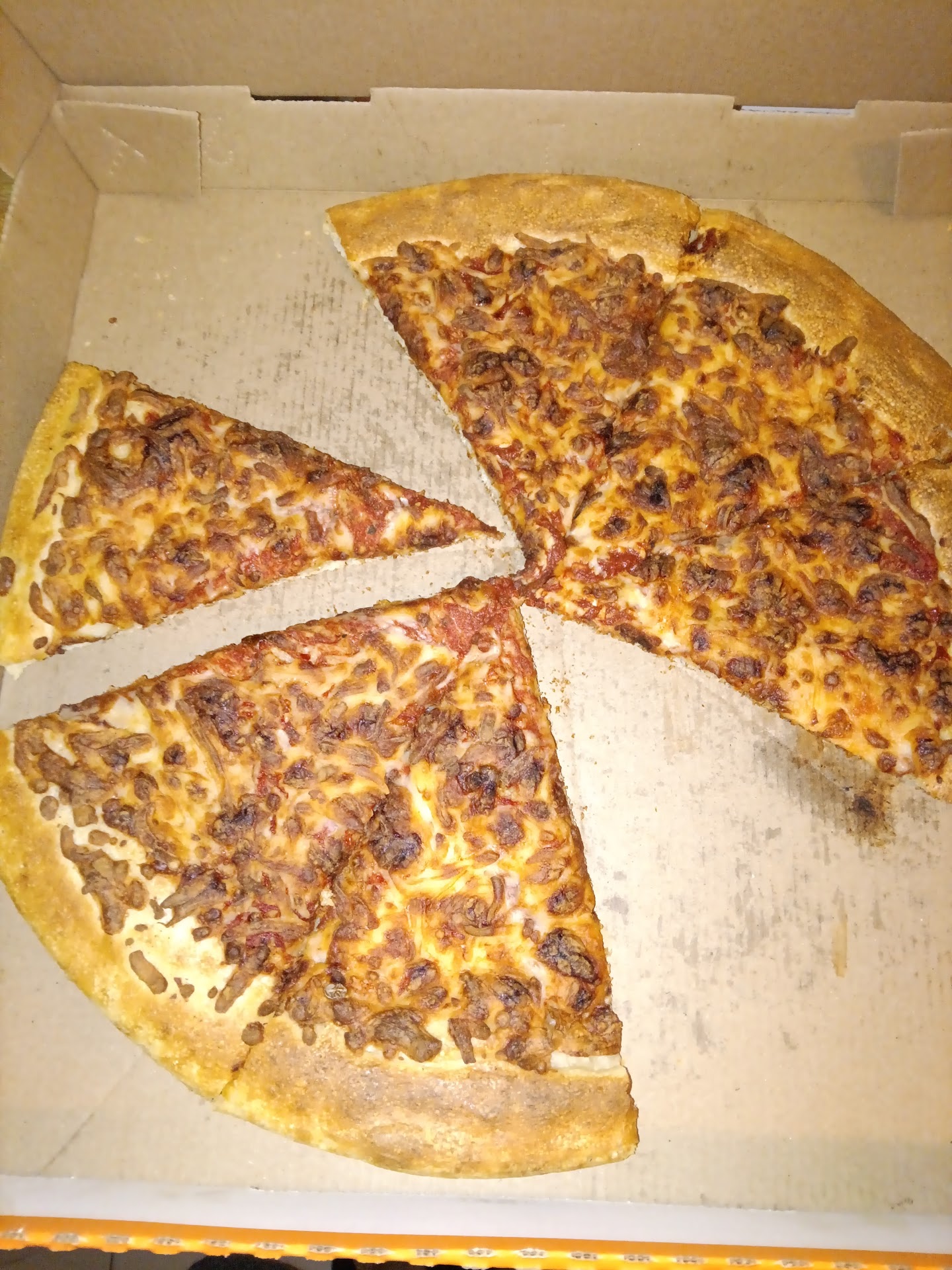 Ā Ā Ā Read moreFor the past few years, every visit has been worse than the last. So I ordered a hot n ready classic, bread sticks, and sauce. I'll start off by saying the bread sticks were actually delicious because it was made fresh. But the pizza....it wasn't hot and it looked like it was ready 3 days ago. I opened it up and it looked like an oversized scab. So I reluctantly bit into a slice and it actually crunched. I'm fairly certain a half way decent pizza isn't supposed to do that. And somehow the cheese was harder than the crust! How did you manage that?!!!! So I decided to at least try a bite of a sausage. Instead it tastes like a piece of hamburger you bought at Dollar Tree. What's sad about all this is.....I remember when your guys pizza was actually good. What happened? Did management just stop caring? I think you guys need to go back...