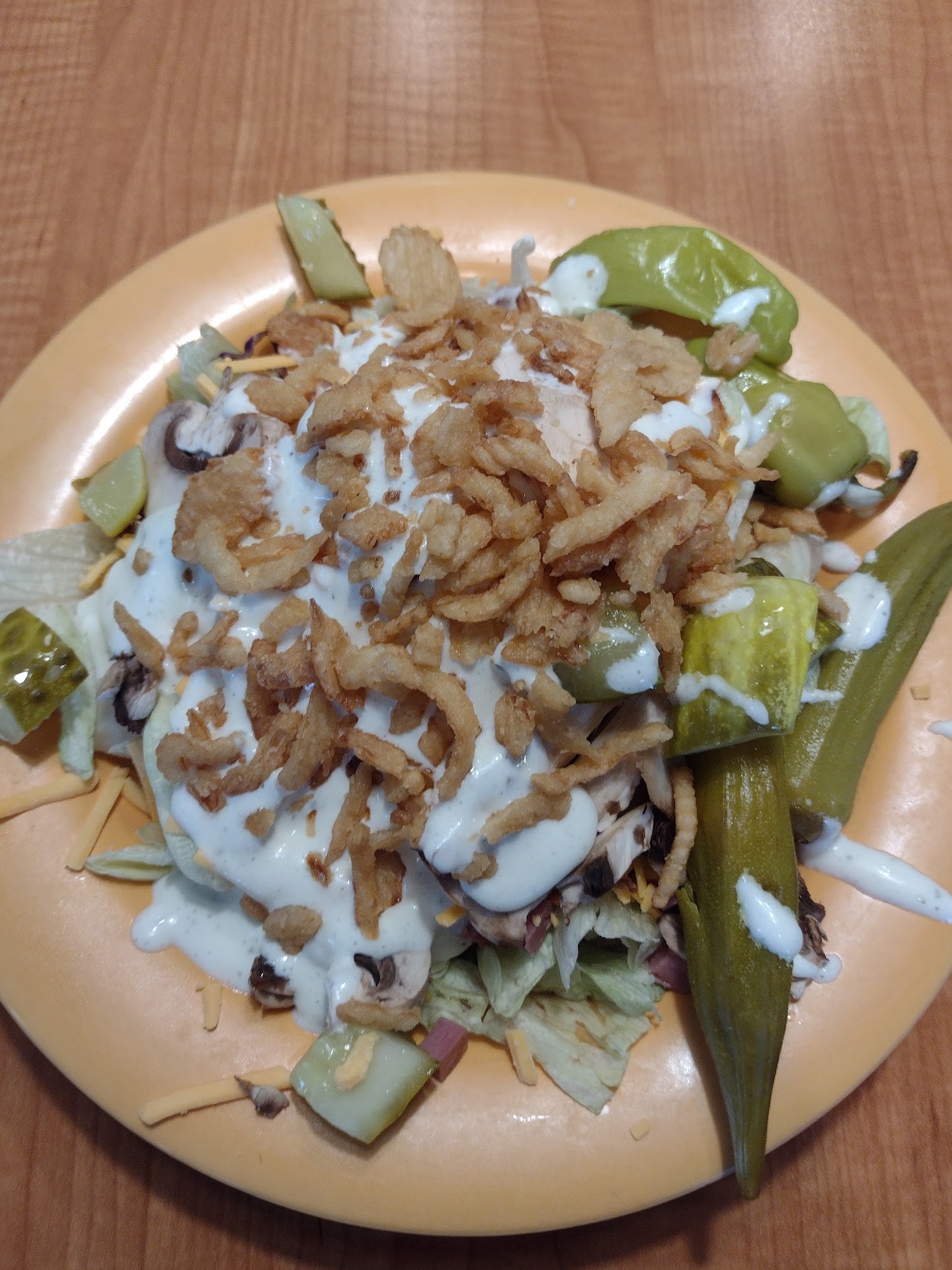 Read moreHonestly, I've always disliked Mazzio's. Their overpriced salad bar, the extremely strange crust on their pizza that feels like a long lost soggy saltine crackers brother, and the whole employee vibe of either I've been to prison, or I'm one internet search away from going to prison. This place lives up to all of that. We got a thin crust, bacon and pepperoncini Pizza that had the undercarriage and flop of a gigantic New York slice, zero crunch 👎🏽. We also got the cheesy dipping sticks, fully loaded, which ended up being like a small supreme pizza. One of us out of six that actually liked it, so it wasn't a complete bust. We also got a salad bar, which was super depressing off the bat, because they give you a segmented container that has some pretty large segments that take up most of the room that you would get in a to-go salad container. Then of course you get charged what looked like over $10 for a very sad salad. Just don't eat here, unless you just like sad nostalgic vibes, because they also haven't updated the insides of these since...