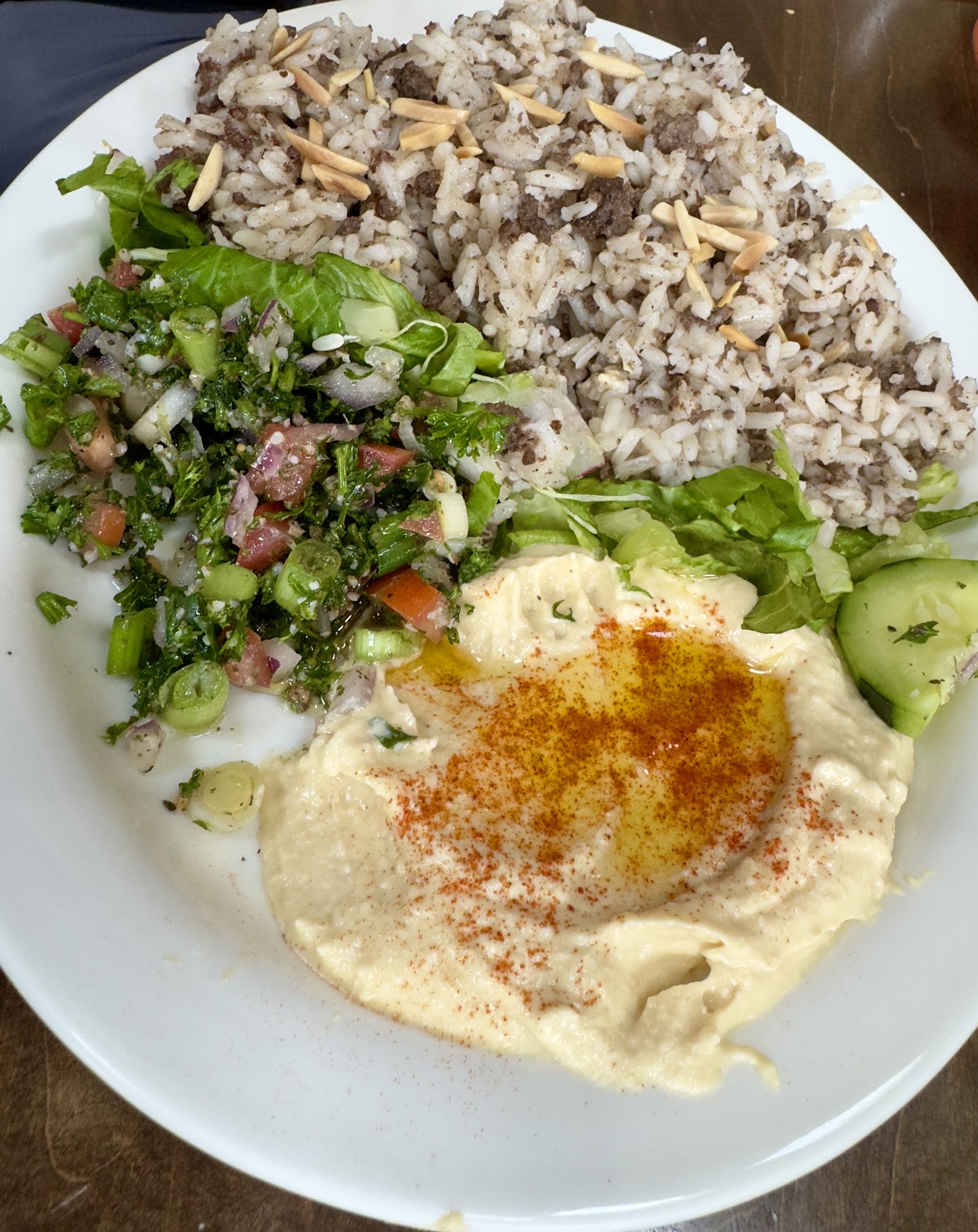 I ordered the Beef Shawarma Plate which came with hummus, pita bread, salad, hashwa and beef. It came out very quickly and everything was perfect and absolutely delicious; creamy hummus topped with a generous amount of olive oil, salad with one of the most delicious honey-mustard dressings I've ever had and, of course, expertly and perfectly seasoned hashwa and tender pieces of beef - all presented so beautifully that it could've been an art masterpiece. I asked about the salad dressing and was informed that it was Mama's secret recipe. I'm good with that - I just hope they bottle and sell it someday because I'll buy it by the gallon!!