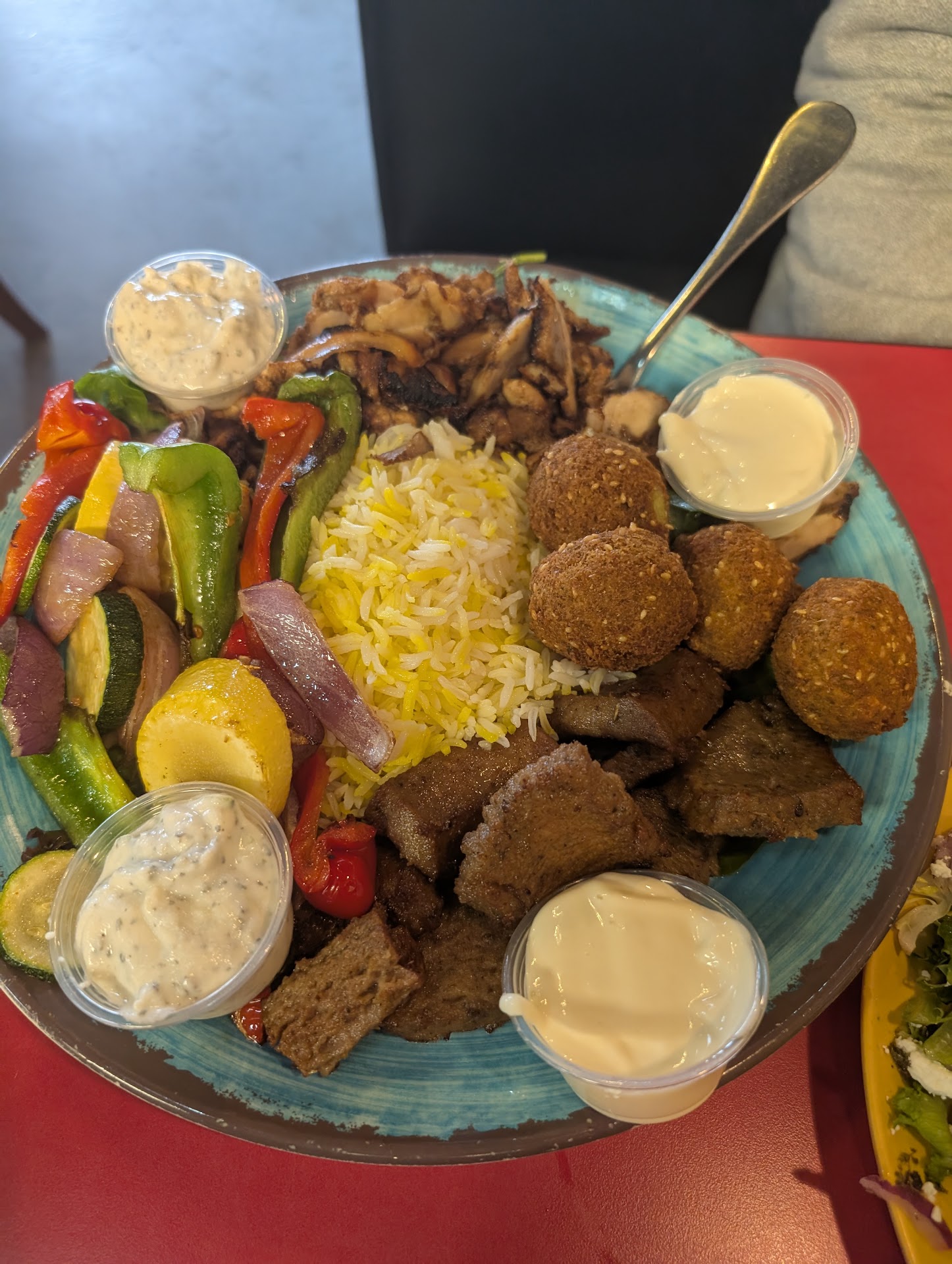 Read moreThe service was horrible. We sat at a table that needed to be wiped off after moving to table away from the door, the owner stated he was going to get it cleaned for us. A waitress came over and was very rude as she cleaned the table. Barely sprayed the table and halfway wiped it, in the process knocked over the salt shaker spilling salt which she didn't clean up. My husband apologized to her about us changing tables and she just looked at him, said nothing and walked off. Our food was taken to the wrong table and placed on the table before being told that it wasn't theirs. My husband's food was brought out first and mine came a few minutes later. The pita wrapped around our meat was cold. Our plates had sat in the window while to go orders were packed up while the waitress tried to figure out who ordered what. Noticed food going out to tables but patrons shaking their heads and food brought back to window. No one knew who had what even tho we all had numbers on our tables. The food was OK....not as good as normal. Service was just meh and one server definitely didn't have a smile to offer to anyone! She looked very angry!! The owner was there and visible, not sure if he was aware of the issues going on or not. He was in the lobby talking to guests and also in the kitchen with cooks. Hoping our next experience...