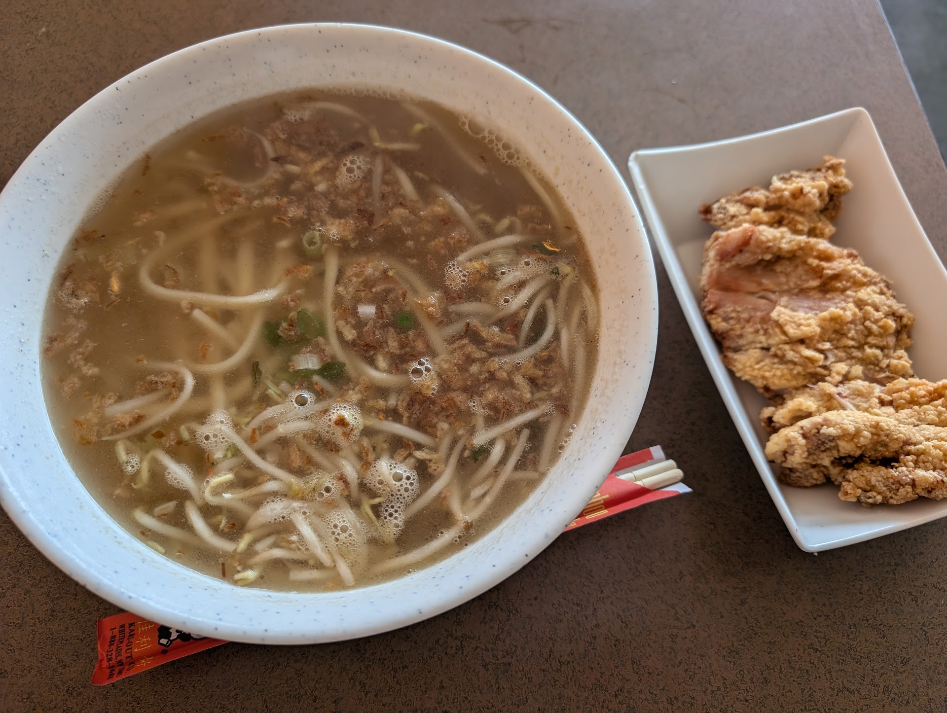 Read moreOrdered over $30 worth of food as my decision was based on the many positive reviews but was sorely disappointed. Let’s start off with the only positive thing which was the chicken wings, they were tasty, not overly heavy on the breading. The fried tofu I got was BLAND, not even salted. I get it that it comes with a side of sauce but I shouldn’t have to mask the tastiness with sauce all over. I would have thought you can’t mess up on plain fried tofu but it tasted bland and I could tell it was precooked, sat for awhile. Wonton Noodle Soup was terrible, the soup base had a strange taste like it wasn’t fresh so after a few bites, had to toss. The combo fried rice was bland too. Maybe it was a one-time off but it was my first time ordering and wanted to support a local business but unfortunately it seemed the cooks prepared the food with zero passion. It was a Monday I ordered so perhaps not the usual cooks? Need more love in...