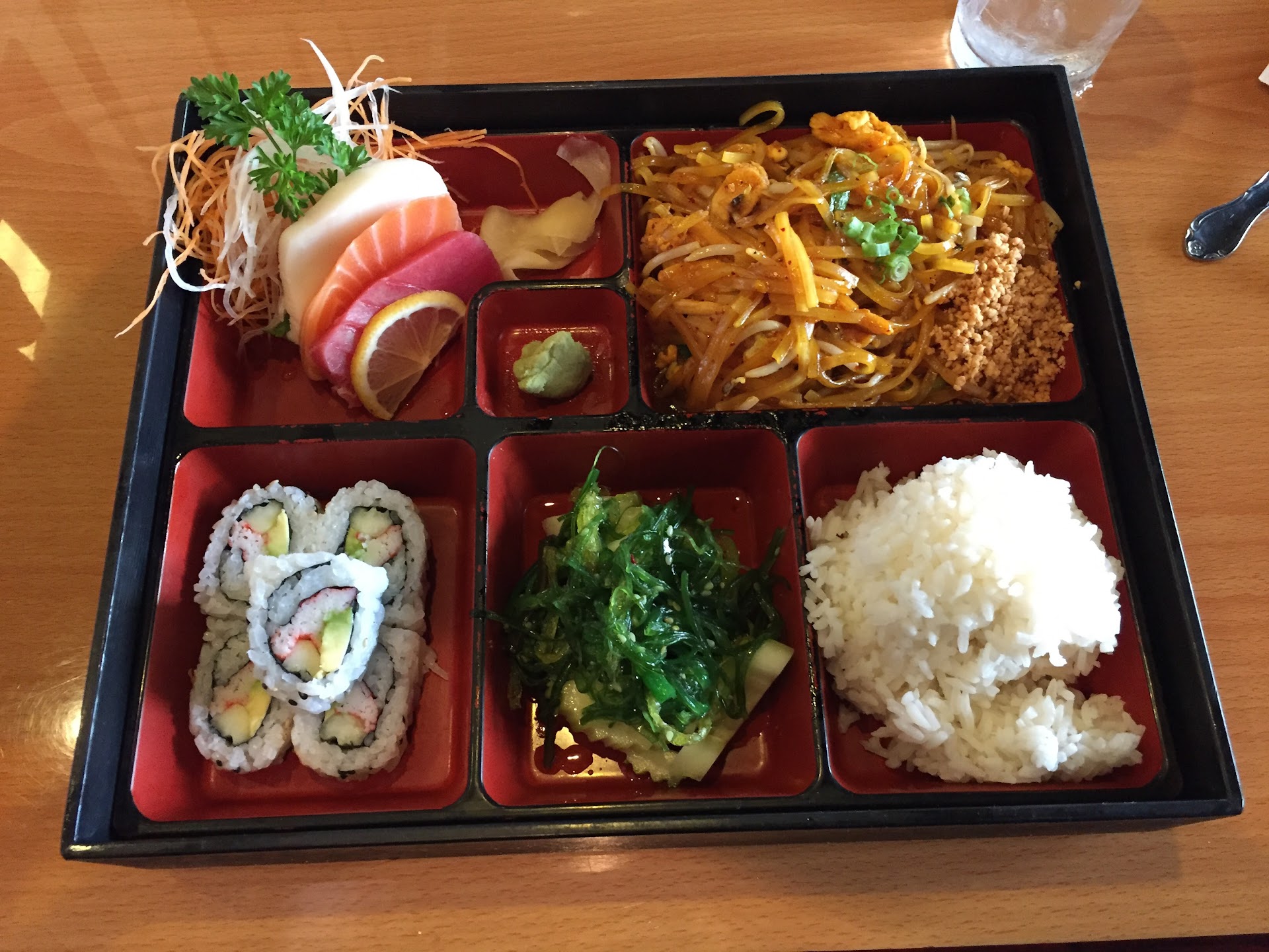 My family is fans of Thai & Japanese Cuisine Restaurants, so hearing that Thai Delight served both cuisines, we just had to try it! We arrived into Thai Delight in mid-afternoon, so it was no surprise that there wasn't a lot of people in the restaurant. We were greeted warmly by the staff and sushi chef (the sushi bar is really close to the entrance), and was seated promptly.