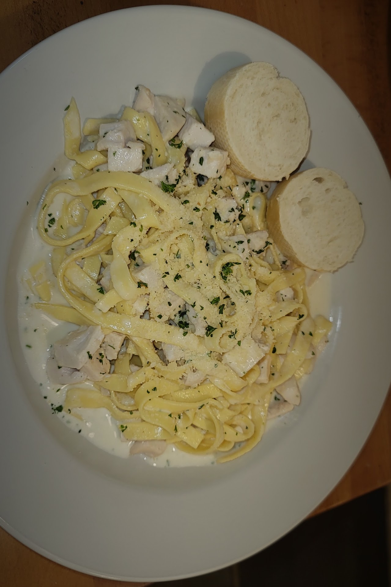I make pasta at home, so I can tell when pasta is actually "homemade." Upon seeing "homemade pasta" on their menu, I thought ehhh it's probably not. I was thankfully wrong. It is absolutely freshly made pasta. We ordered the chicken alfredo and one bite in I could tell this is REAL pasta. The weight of it on the fork, the way it holds the moisture from the salted water, the texture you can feel as you eat it are hallmarks of a fresh pasta. I couldn't see in the kitchen, but I would not be surprised if this pasta isn't even dried before it goes into the water.
