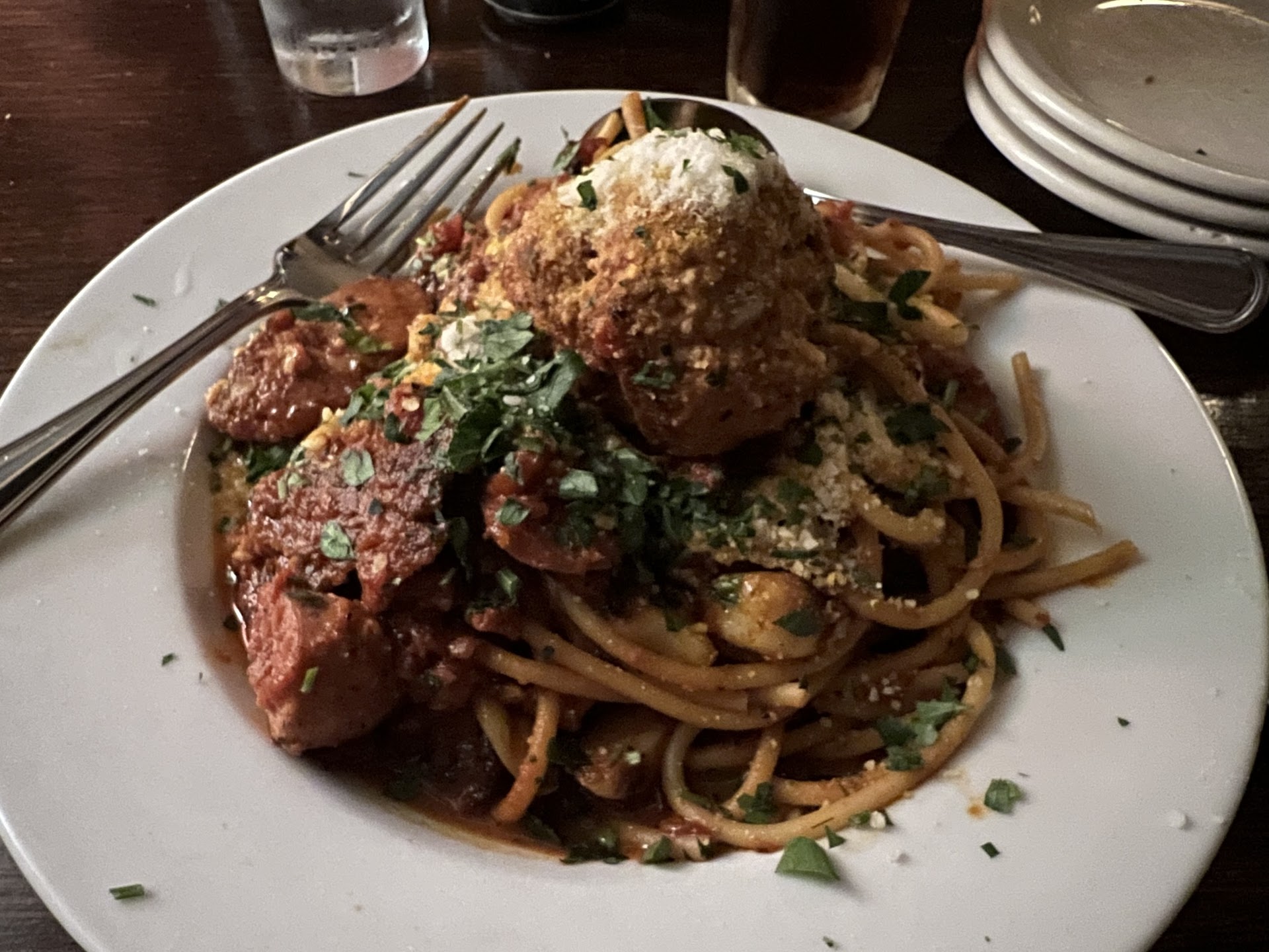 Read moreJoined friends here tonight for the first time. I was apprehensive at first because I have not had good luck at Italian restaurants in the past so they are not my favorite. But this place has changed my opinion. The service was friendly and warm. The food definitely exceeded my expectations. I had the Bucatini with Meatball and sausage. It was delicious and the meatball was so good I would order just a meatball for lunch with bread for a smaller portion. My spouse had the ravioli and it was amazing. The pork lent a smoky flavor to it and it was well balanced. Everything was seasoned to perfection. The pasta was the perfect texture on both dishes. The garlic bread serving was crunchy and full of flavor with fresh garlic. The portions are huge, you will be taking home boxes. Let’s talk about dessert. Something I rarely ever order while dining out but I couldn’t resist the Limoncello cake and a cappuccino. My friend ordered the tiramisu. The limoncello cake is the lightest cake I’ve ever had. It was heaven and the perfect finish to a heavier meal. The tiramisu was also extremely light and well balanced. I highly suggest trying both. The cappuccino had a deep flavor and the milk was foamed perfectly. Heads up, this is a true cappuccino serving not a giant wide cup like some coffee shops serve. The atmosphere is welcoming, with dimmer lighting but not too dim, it would be perfect for a date night. Heads up, it is very crowded and very loud, not the fault of the restaurant, it just means they are doing well, but if you or someone in your party have sensory issues, you may want to bring headphones. Parking is available out front but you can also part at the bank on the other side of Ivars when it’s closed. I cannot wait to go back and I never thought I would say that about an Italian restaurant. This place...
