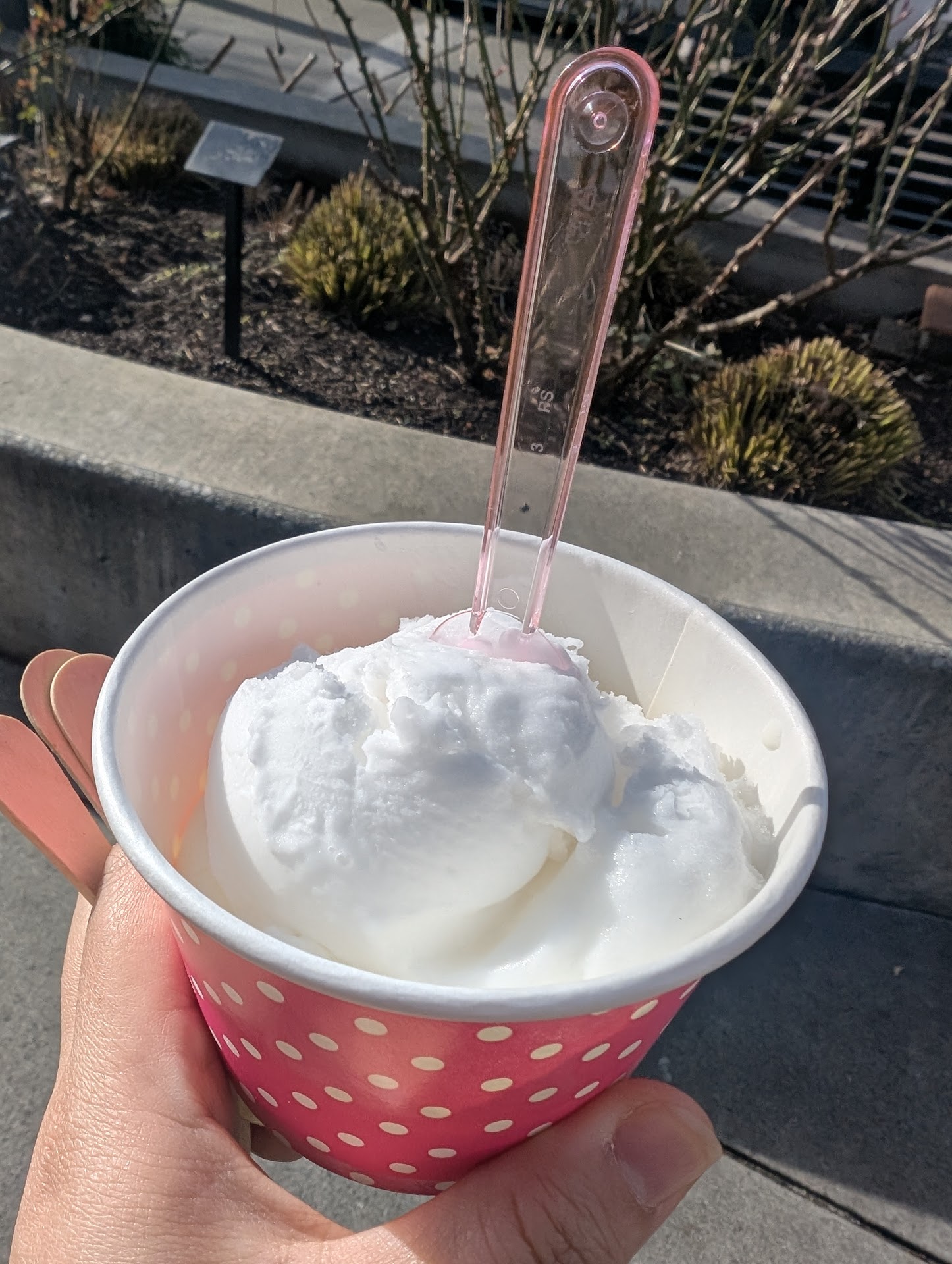 The vanilla was super creamy, probably the softest and creamiest out of all of the ones I tried. It was also very buttery, both in the texture and flavor, it was quite intriguing. The mango was amazingly refreshing, but also quite tart. It really tasted like as if I was biting into a real mango. That was pretty much it for the mango. The ruby chocolate on the other hand was very interesting. I still couldn't distinguish what it reminded me of. I kept finding myself eating it some more trying to figure out what it tasted like. It was more like a milk chocolate, and slightly reminded me of fondant? Finally, the dark chocolate, probably my favorite one of the night, competing with the ruby chocolate. The dark chocolate was insanely rich, and was actually slightly fudgey. It was definetly the thickest, and the most dense. It reminded me a lot of a brownie.