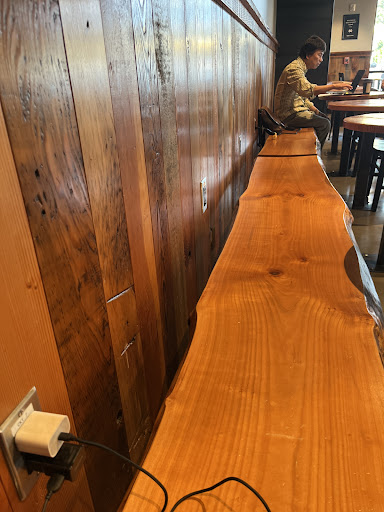 Read moreI go here often to caffeinate myself and get some writing done. The coffee is good and the people working here are very nice. The young people who work the order counter are always pleasant and fun to joke with. Skip the food. I have ordered several different items and regretted it every time. It's too bad, because they have some items that should be delicious. There is a long bench with tables along the wall. Each table has access to outlets, so plugging in is easy. The bench is a bit of a problem. It is very uncomfortable. Maybe that is to encourage people to leave as soon as they finish their coffee. The other problem is that with a common bench, there is always someone who plops down hard or shifts in their seat shaking everyone. There are also comfy seats by the fireplace. It pays to get there early to claim one of these spots. As they fill in, you might meet someone...