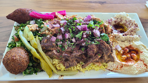 Read moreShawarma was pretty salty, and overall did not taste like traditional shawarma, the side dishes were also not that great. Tabouli was mainly just parsley with a bit of bulgar wheat and other ingredients, seasoning was decent. Hummus, kind of bland flavor and underwhelming. Pita was pretty thin but okay flavor. We took baklava home, it had a very strong almost citrus flavor that also seemed odd. We also purchased a ‘Dubai chocolate bar’ it was extremely disappointing… more of a ‘crunch’ bar and not worth $10! I do not think the quality of the food matches the advertised descriptions of said food. Sadly, I do not think we will return. We have tried, other better quality Mediterranean restaurants and will seek those instead. (Also, I have lived in the Middle East and traversed the region…I do not expect that quality necessarily but this was...