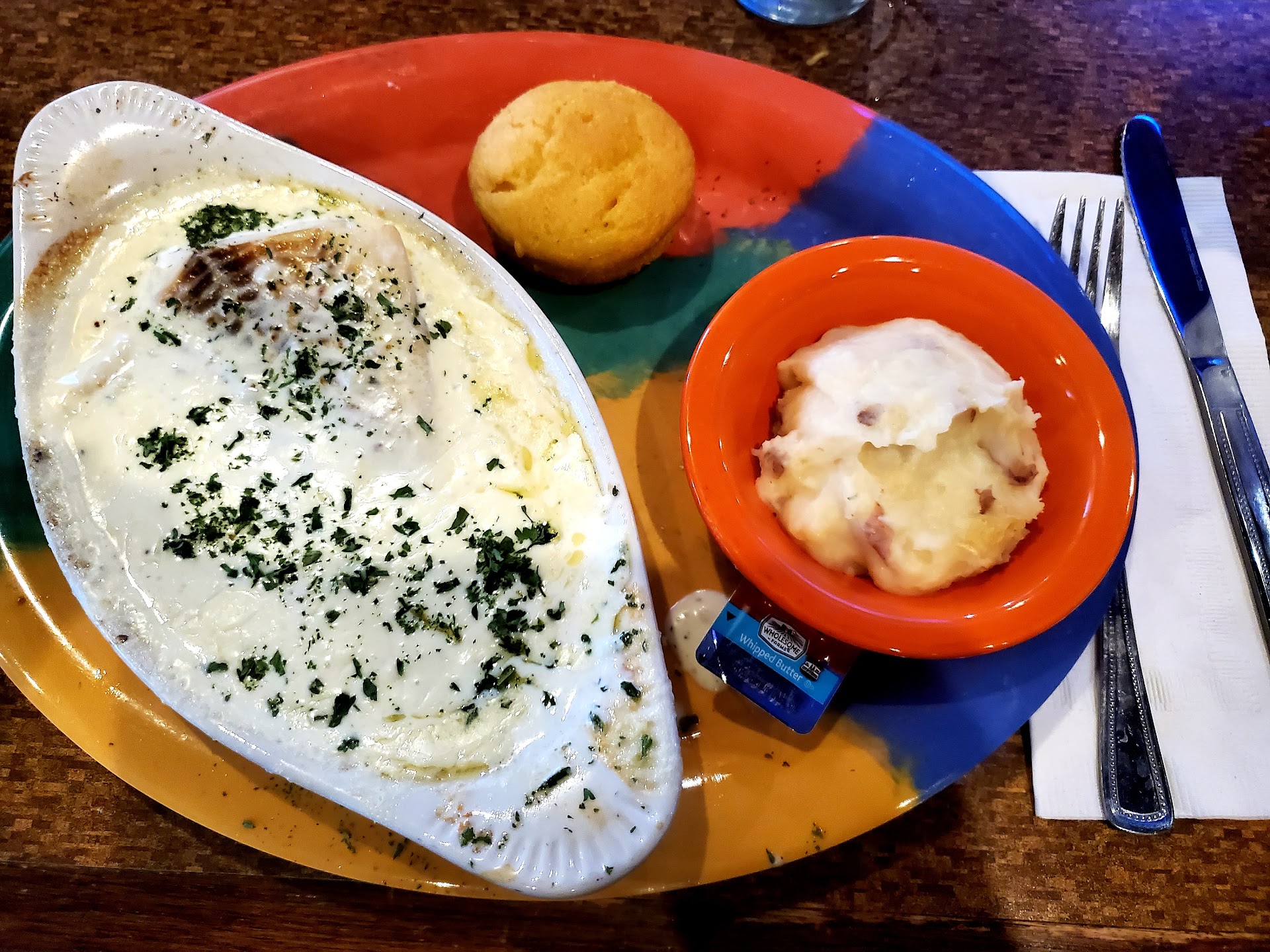 It took over an hour to get food, our order was messed up, missing three items, no refills on drinks until we flagged someone else down, and as for the food - I believe it would have been good had all the fish and crab cake sandwich not been over cooked. The frys and hush puppies were cooked way ahead of time, they tasted old. My husbands pasta he said was good but very runny, not sure how, and came with the wrong side.