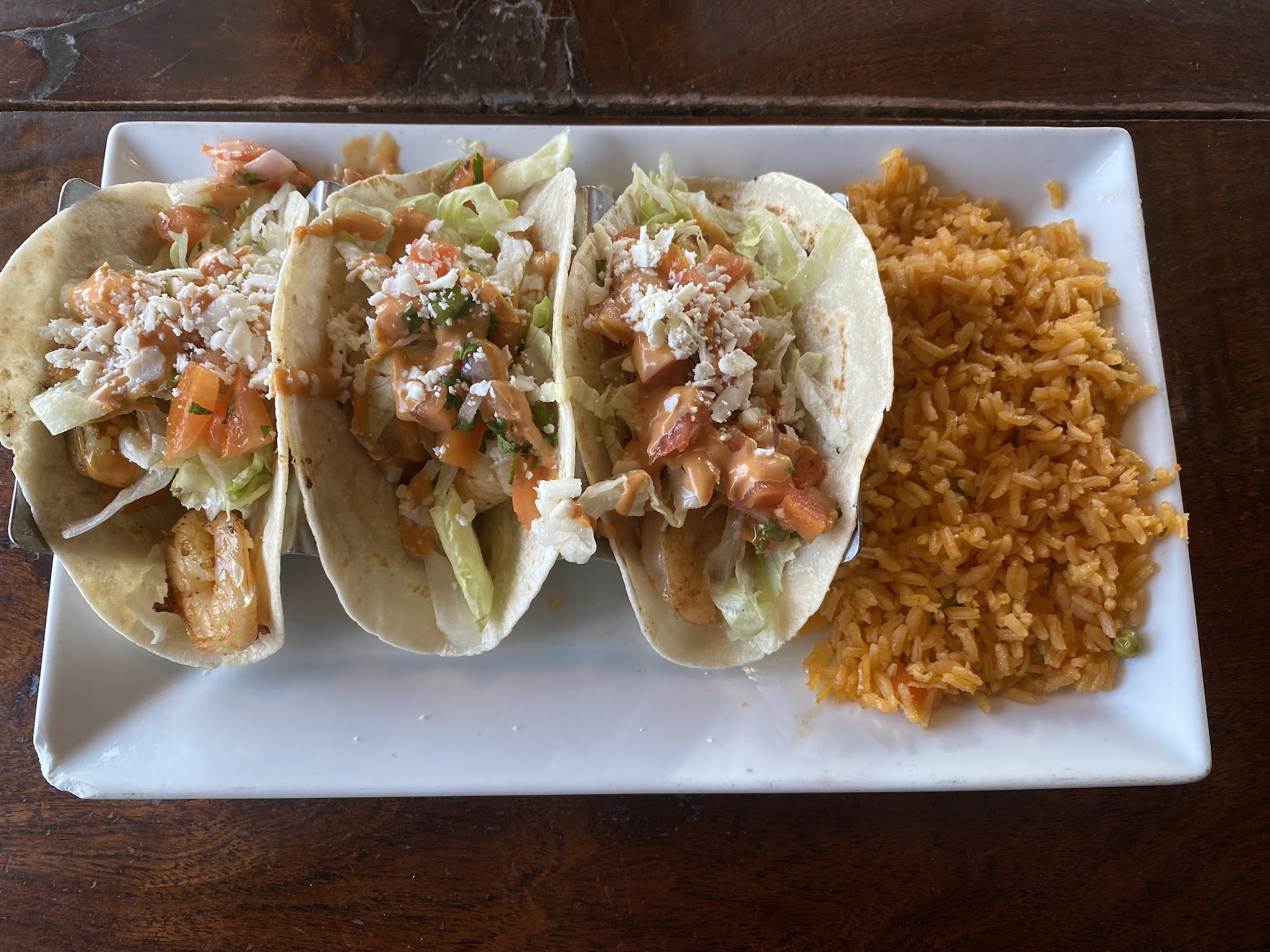 Best part of my visit, was my entree. I enjoyed three soft shelled Shrimp Tacos and they were delicious. The shrimp stuffed into the tacos were prepared well and they were huge. My side of Mexican Rice was very good. Typically, I am not a fan of Mexican Rice, but theirs was soft and seasoned well. Wish all Mexican restaurants made it this well.