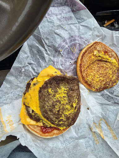 I know each one of these locations can be run differently, this one needs help. Getting fast food almost anywhere now is, well, a sacrifice of your wallet and stomach at the same time. I literally haven't gone to a McDonald's in over 8 months, maybe over a year. This location is a good example why, aside from the way they (as a company) have gone downhill so far since they were forced to compete more heavily with other chains... I looked at the lit menu board, and didn't see any of the sandwiches listed separately, only the combos. As if they don't want you to know the price of an individual sandwich. That alone could influence which one I'd order... but I got a simple quarter pounder with cheese, 4 pc nuggets, and a pumpkin spiced iced coffee. I asked for extra pickle and ketchup, glad I wasn't charged for it, because I couldn't tell. If anything, they put extra onion on it, which overpowered any chance this sandwich had in the first place. The bun was a little tough around the edges, food wasn't hot, just warm. The nuggets have been reduced in size since I've seen them last, even the coating is not as thick... so corporate probably thinks they made good decisions here...nope. Besides the food quality being as poor as it's become, I'm wondering what else is up with this location... you can only see so much if you walk in, but it's a different perspective at the drive through. None of the employees are dressed the same, there was even one who didn't look like they worked there at all, eating out of a bag in the prep area. Some were just plain unkempt. And it needs cleaning... the small cooler above the register was covered in greasy handprints, the register itself is sitting on a piece of 2×4 for what reason I can't guess, and the back door(which I believe is supposed to be kept closed and locked) was clearly kept open with something, with trash piled on the concrete. Apparently the manager here isn't doing much managing. Next time I'm in a time crunch I'll be at the...