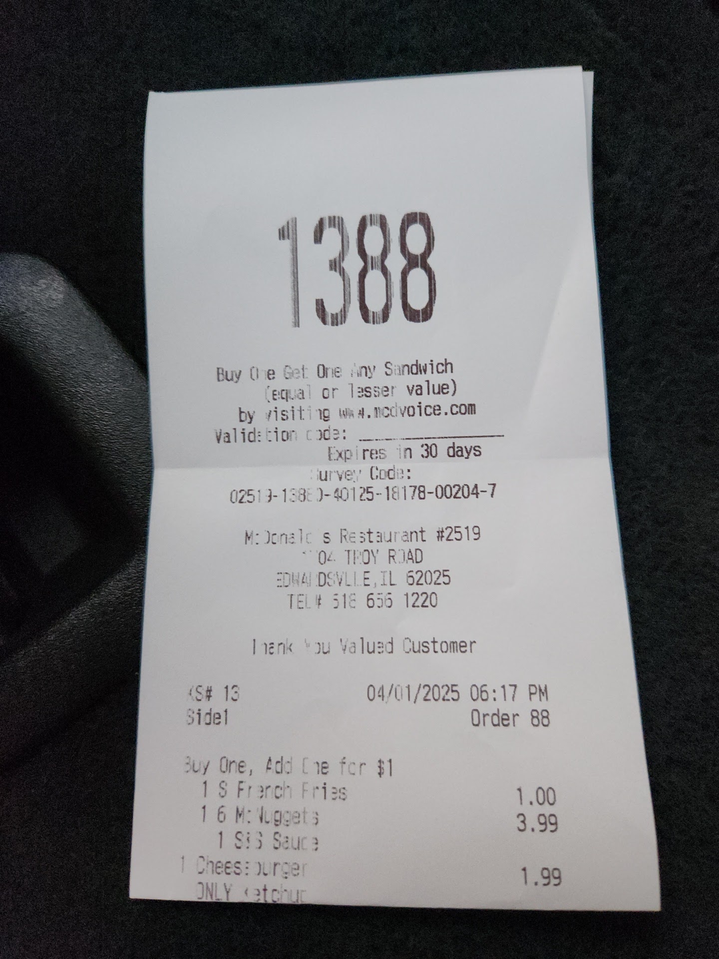 Read moreThis place always sucks in one way or another. I only come here for my kid now. Waited in a reserved space for 15 min after ordering in drive through then had to get myself and my kid out of the car and walked in. All this for a 6piece kids meal. That’s it. The place wasn’t even busy. There were many employees in the kitchen trying to figure out how to do their jobs. Person that finally got my order was rude and offered no consideration for our wait. This is just one instance at this place. I’ve had them not put the cheeseburger in my kids happy meal. I’ve seen a gloveless person put ice in the ice machine in the lobby by hand after scratching their backside. I’ve been in the play place with my kid while employees took their lunch and cussed and complained about their jobs loud enough for us all to hear. I can go on and on about this place and how dirty and rude and unorganized the staff is. There is one lady that has shorter grey hair that’s there usually earlier in the day. She is the only person that presents herself as a professional and is kind and the only person here with a clue. I came to edwardsville from stlouis and this place is worse than any McDonald’s I’ve been to in the city....