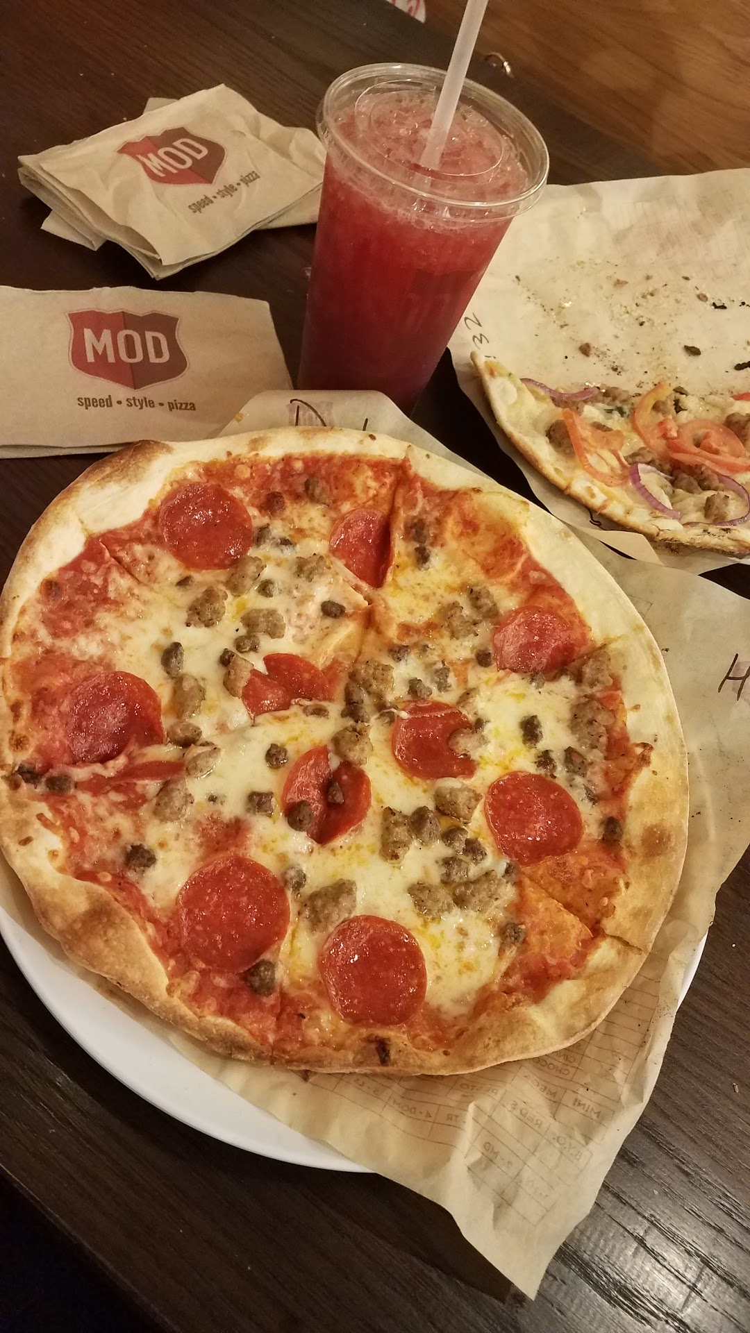 The quality of the ingredients used at Mod Pizza is impressive. The toppings are fresh, and the flavors are vibrant. The crust is perfectly cooked, with a nice balance between softness and crispness, making each bite enjoyable.