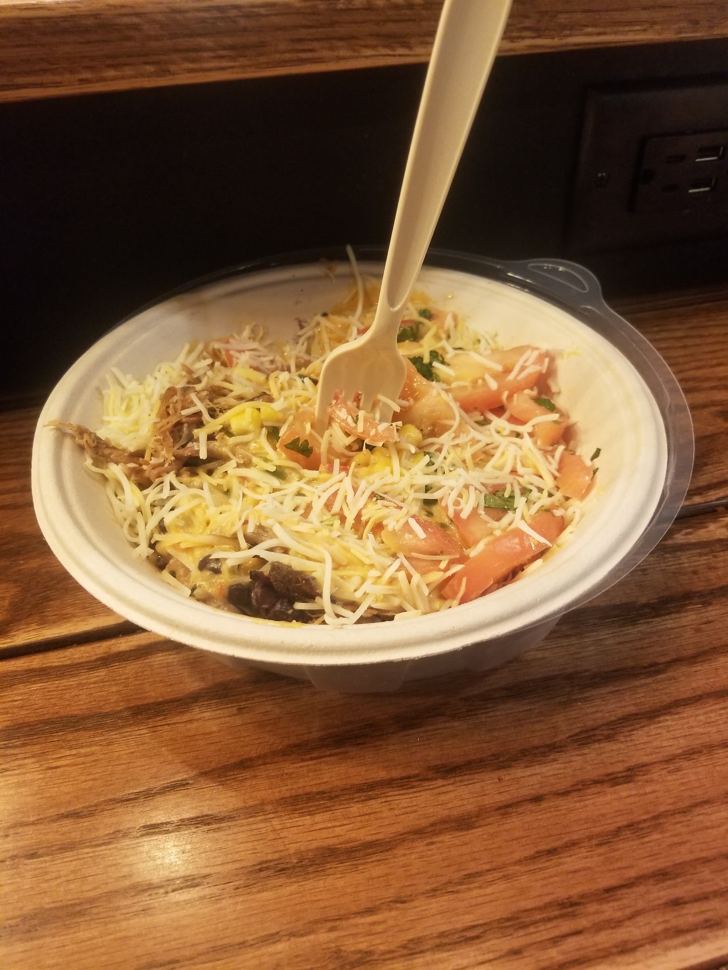 Read moreI only get to enjoy Qdoba once a month and most of the time it is a pleasant experience. Tonight not so much. The food was great as usual which garnered the 2 star review. The customer service is why it remains as a 2. The first young lady was very nice and prepared my food in a quick and courteous way the second girl at the register seemed to be in a hurry even though I was the only person in line and even though I stated twice that I wanted my meal for dine in she tried to put my food in a bag.