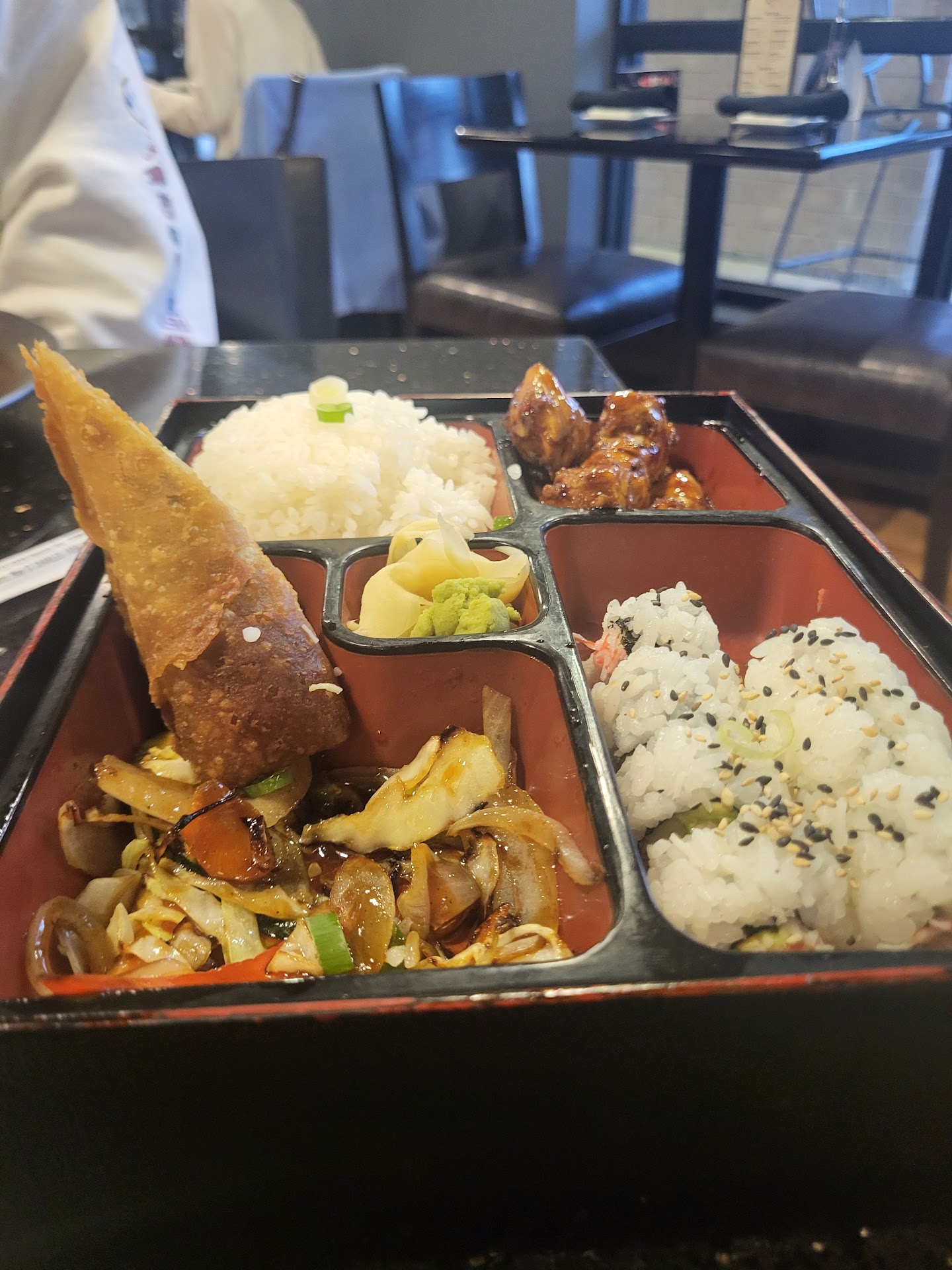 Read moreApparently, today was a day of sushi specials. When we walked in we waited at the counter for a few minutes to be seated. They were prioritizing about 15 to 20 to go slips on the counter. When we were seated, we were immediately told that it would be about a 45-minute wait on food because of the special they were running. I mean who wouldn't want a special right? Although the special was news to us, My husband decided he didn't want sushi and got a Bento Box. I ordered 2 rolls. She suggested an appetizer since the weight would be a while. So, we decided to place an order for an appetizer. OVER an hour and a half later, we received our food. EVERYTHING in my husband's Bento Box was cold. He never got his salad (that came with his box either.) My sushi was "okay". It wasn't anything to write home about. We truly felt that their call in orders for pick-up had priority. Which is sad. They really need a designated sushi/cooks and staffing JUST for those orders only on days like this. Their tipping customers, in house, trying to enjoy their meals really suffer. While the Bento Box was removed from our bill (which we appreciated) I am unsure we will...