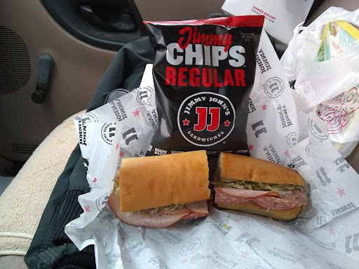 I was the only person in line. The only other people in the store were a couple eating. I ordered a slim, two little John’s and a turkey tom. Ordering process went smoothly, and I was told to wait at the end for my sandwiches. In every other Jimmy John I have been in, my sandwiches are ready almost before I’m finished paying—FREAKY FAST, right? Not this Jimmy John’s. There were four workers in the store. One stood at the cash register, one was making sandwiches, and I couldn’t tell what the other two were doing. The one worker making sandwiches stood there and made about 14 sandwiches and putting them in a box while I stood there and waited patiently. Finally, after 8 minutes, I asked if my sandwiches would be up soon. I thought that this was odd. It’s not like there was anyone ahead of me, and there was no one in the drive thru. He was terse and told me to just wait. He made a couple more sandwiches for the box, and then started to make my sandwiches. I asked if those were my sandwiches, and he very rudely said, “What about them?” I asked if they had tomatoes and lettuce, and he completely ignored me. When he was finished (it only took him two minutes to make the sandwich—which IS fast—what I would have expected from the jump), he basically threw the sandwiches on the counter. No thank you, have a nice day. Nada. Just a smug, irritated expression on his face. I felt I had been treated very poorly, so I asked the lady at the cash register for the name of the man making the sandwich, and she told me that she’s new, and she doesn’t know anyone’s names. I asked the other person standing next to her, and he would not answer me either. Very rude indeed. I LOVE Jimmy John’s, but I will NOT be frequenting this...