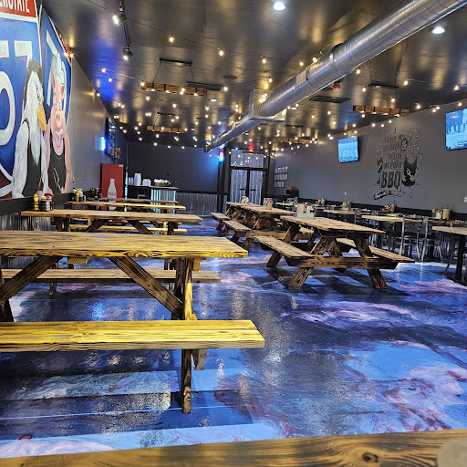 Read moreIf youâre looking for a unique BBQ joint, look no further! Found this place using google maps as we were just passing through and staying at a hotel nearby. With a business name like theirs, you just have to check it out, right? I will say we had just a little trouble figuring out exactly where it is cause it was dark when we pulled in to the parking lot and the signage wasnât very visible. We ended up on the opposite side of the building where thereâs an entrance into a bar with a passthrough to the restaurant. Come to find out, we didnât need to drive around the building like we did, but no biggie. Prices are very reasonable and we opted for a half order of the pulled pork nachos, the big pig sandwich, and an order of the garlic cheese curds. OMG, it was soooo gooood! The pork had great flavor and Iâm glad I didnât get the full order cause I had almost more than I could eat. My only complaint is the chips on the bottom got soggy cause the pork was so juicy, but it was still delicious. You can sub out the chips for fries for a $1 upcharge, so I may do that next time. My husbandâs sandwich was huge, and the cheese curds were great. This place will definitely be on our stop again list whenever weâre traveling through! Oh, I almost forgotâthey even turned the Michigan v. MI State football game on for me...