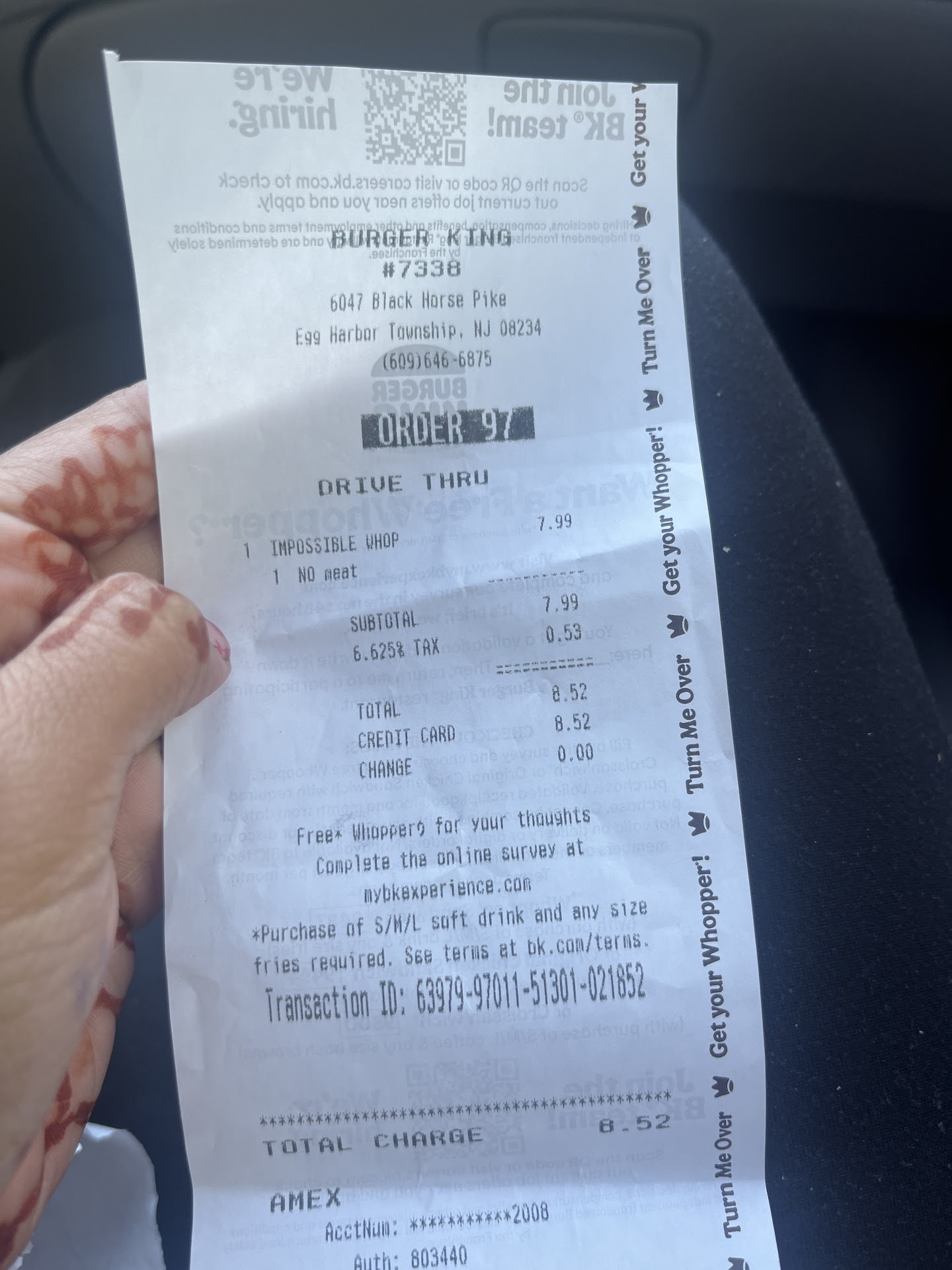 Ā Ā Ā Read morePretty hit or miss with mobile orders. I have ordered from them quite a few times before the pandemic with mobile orders and they either received it or didn't. In the times that they did not receive my order, I was left with no resolve but to request a refund through Burger King's Support Page.