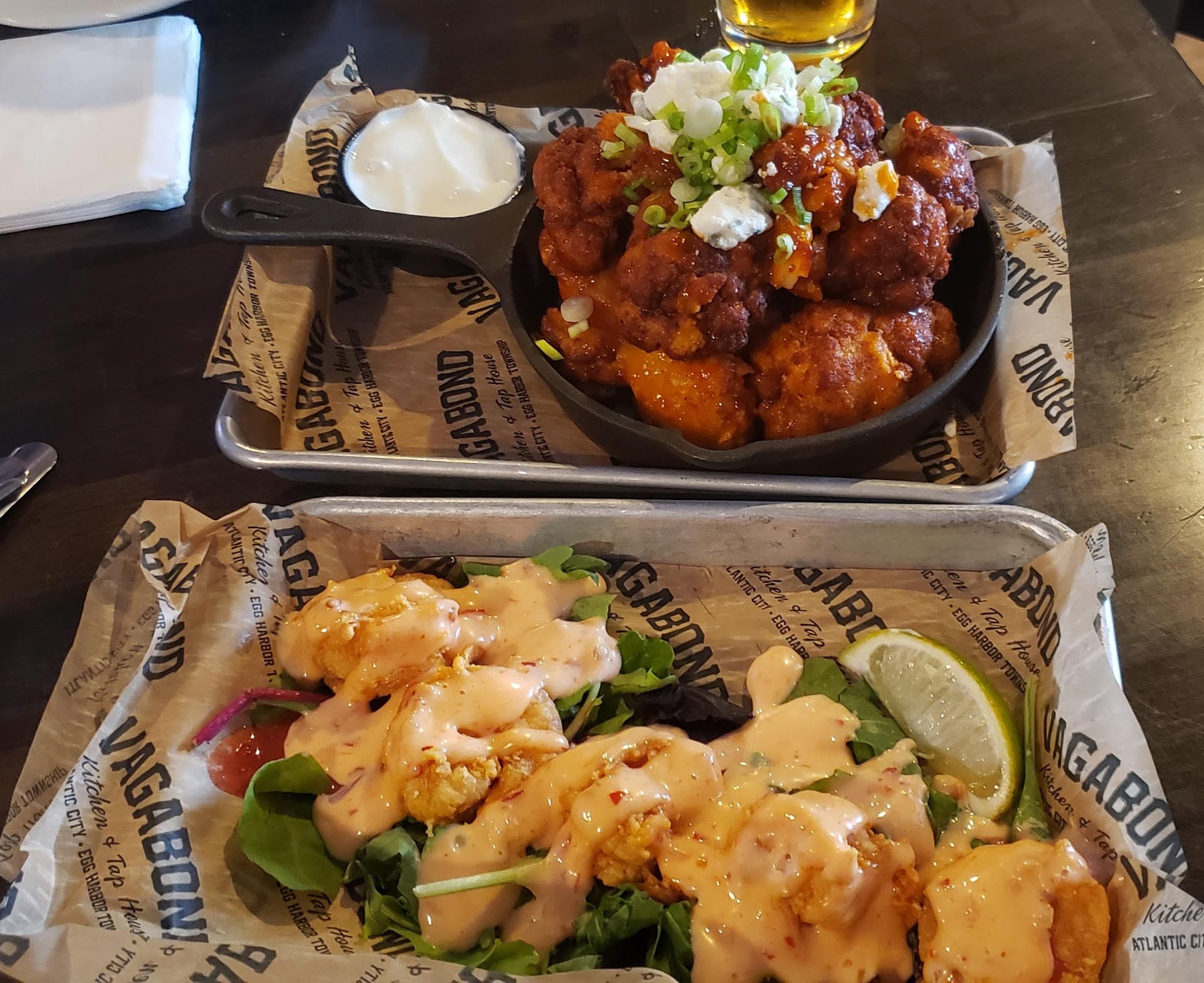 Read moreGet one thing right, 4 stars is simply for the food! The Buffalo cauliflower is amazing, the tequila shrimp bangers also out of this world good! We both got the 3 way & again superb flavor, big sandwich, as a Triple D selection it lived up to being a featured item. The selection of beers is good as well & wish I could have tried a couple others. Now onto the not so good stuff. It took a good 10 min. To be greeted & our drink order taken. We got our beers & after drinking about 1/4 of the draft noticed lipstick on the glass (not mine, don't wear it). Another 10 min. To flag down our waitress. She laughed when told about the lipstick & said oh, thats not good. No apology, no free drink! Apps arrive & our beers emptied. Had to wait again for refills while apps are getting cold (spicey so definitely need cold drink). Food arrives & finally refill order taken. Never checked on again until we were completely finished eating & probably had empty glasses half way through main course. I would go back for the food or maybe try other location in AC. I dont remember the waitresses name but I would know her & refuse to sit in her area. I also believe the owner was there & stopped to speak to every table in our area except ours. If you are going to do that dont skip anyone. Really made us feel like reporting the lipstick lowered our...