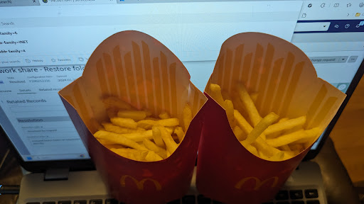 Why one star? Here ya go: FOOD: Typical fast food, pretty good. Unfortunately, the fountain soda (I dispensed the regular type Coca-Cola) had a bad taste! Blah! Usually McDonald's has the greatest tasting fountain soda, so this was disappointing. Clean out those machines or whatever. LOL SERVICE: I used the screen to order my large meal, and pay by credit card. It instructed me to take a table stand, enter its number on the screen, bring it to a table, and wait for the order to be brought to me. It must have been out of paper because it gave me no receipt. After my 15 minutes of waiting at a not-too-busy time, the staff apparently decided that they didn't want to bring the order to the table. They bagged my order to go instead, and called out an order number that I didn't know. Maybe that was on the receipt that never printed. Finally, they call out my table number, which meant that they wanted me to pick up my order at the counter, which I would have happily done 10 minutes earlier had I known they didn't want to bring it to me. But they knew. The table number is in giant digits on a paper they stapled to the take-out bag. As the staff talks about their sordid personal stuff in front of me, I have to remind them to give me my large cup. ATMOSPHERE: A guy with his life packed in bags was lying on the bench and slumped over one of the dining tables, looking passed out. I was relieved to notice that he was breathing. He was there sleeping throughout my visit of over a half-hour. I could hear the staff continue to chatter from behind the counter the whole time...