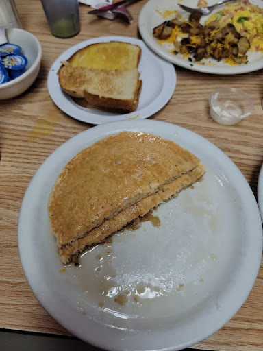 It is not deserving of more than 3 stars, very generic. The food was very basic. Pancakes tasted like standard store bought pancake mix, not buttermilk like IHOP or other restaurants. Scrambled eggs were most likely powdered or frozen eggs and tasted the same as military food. For those who don't know, military food does not taste good. The homestyle potatoes were the highlight of the meal but were cold on arrival. The shredded cheese on top didn't even melt. This also heavily reminded me of military food. The Denver omellete was also probably powdered or frozen eggs.