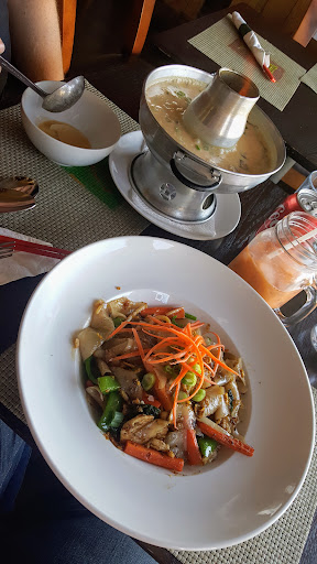 I've driven by this place a few times on my way to jobs. The name always intrigued me and we finally had an opportunity to try it out! There is plenty of parking behind the restaurant, so you shouldn't have to worry about having a walk to get there. When we walked in, we were immediately entranced by the cozy feel and ambiance that awaited us. There is not a whole lot of seating available, but it is a small area and they have done the best they can with the space they have. No complaints from us! The owners are a husband and wife and they were both extremely friendly and welcoming. When we looked at the menu, I was very surprised to see how many vegetarian and vegan options they have, so if that is something you are being conscious of, this is a great place for you to check out! I got the drunken noodles and my boyfriend got the Tom Kha in a pot. Getting the soup in the pot was amazing as he was really able to enjoy the soup without rushing so it wouldn't get cold. It's been a constant gripe for him at other places. Both dishes were absolutely delicious and surprisingly light on the stomach, compared to other Thai places we have been before. I ate my entire plate of drunken noodles, and I am notorious for taking half of my plates home with me everywhere we eat, so that gives you an idea of how delicious and light it was. This is very much food that you would expect if someone cooked for you at their home. It's also a very nice touch that they bring out a carafe of water so you don't have to get a refill every few minutes. The only gripe is that they only have soda cans, but that's something that my boyfriend alone is picky about in our circle, but be prepared in case you are expecting to get a soda while you are there. I am very glad that we decided to try it out and this will definitely be a lovely spot that we will be visiting frequently! The food was great, the service was awesome and very friendly, and it was all at a very very reasonable price! We will definitely...