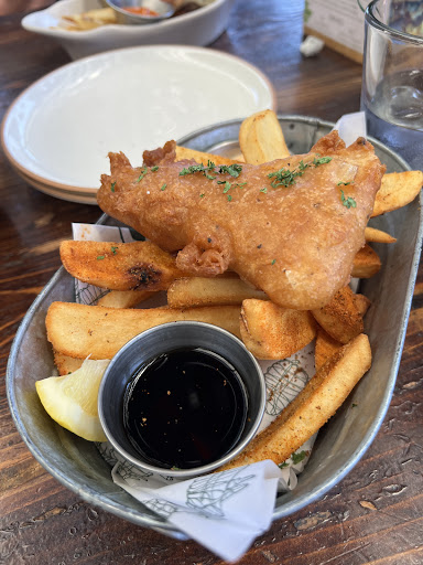 We had a quick lunch here and the food came quickly and the staff was friendly and attentive. We ordered two items off their happy hour menu and both dishes were cooked well and were delicious. It is important to note that the happy hour portion sizes are small though. We were fine with that because we wanted a small meal anyways but that might not be what other people are seeking when they come here. For example, we ordered the fish n chips and although it came with a generous amount of thick cut fries, there was only one piece of fish (it was fried to perfection though). And we ordered a slider dish and it came with a handful of skinny fries and one, singular slider. Again, we were completely fine with that because it was a great price and we were not super hungry but if you are hungry, I recommend ordering off the regular menu or getting multiple orders off the happy hour menu.