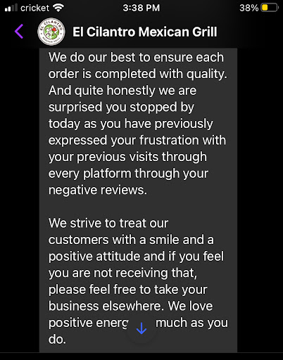 Ā Ā Ā Read moreI have never felt so disrespected in my life when it came to a restaurant. I have never had to write a review but I want people to know about the horrible service me and my family received from this place. I have been eating here for years but lately it really changed. For the past few months, we have been receiving pork in our food when we ask for beef only. And every time that we call this place to redo the order or see what the problem is, the answer me and my family receive is āthere is nothing we can doā. Me and my family do not eat any type of pork. When we went to order beef tacos today, we made sure to check them because every time we get it, there are always bits of pork mixed with the beef for some reason. We pulled over and found bits and big pieces in every single taco. My dad walked in asking why and if we can redo this order. The lady in the front said ājust take the pieces out.ā My dad replied with āwe canāt eat porkā and all the lady said was āthere isnāt anything we can do about itā. So we left the food and left the restaurant. As someone who doesnāt eat pork because of religion, I would never judge or disrespect anyone who eats it because everyone is different and has different beliefs. But the fact that a restaurant is mixing meats together when we asked for only beef is not only disgusting but a violation. After today, me and my family will not be coming back because of this. To anyone who is like us who do not eat pork, I recommend not setting foot in this place. Who knows what else is in the food they serve you. If I could give 0...