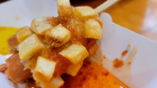 Omg. The food was amazing. We got 1 potato, cheese, and sausage mozzarella on a stick. We hadn't ever had anything of this sort before so we were tentative on getting anything more. We were sad we didn't. We LOVED IT. Amazing textures and flavors to the item we got. We will definitely have to go back and get more of these. We took a picture too late but here is a half eaten almost immediately destroyed piece to look at. We will take a better picture next time. The people serving were kind, but very soft spoken so didn't get much energy from them. Took a bit of time to get the item fried up but that's OK as it was done to perfection. The atmosphere is a mall so not the best ever, but hey the price was right and the food was...