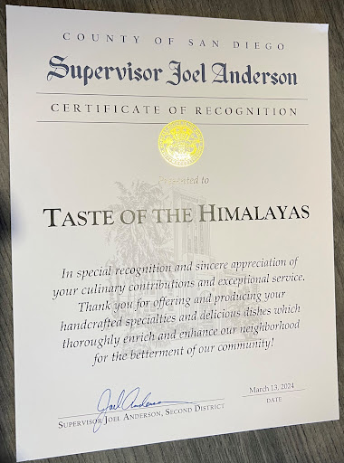 I wrote a review about a year or two ago, but when I was recently at the Taste of Himalayas in El Cajon, but thought it was time to do so again after I noticed a review from our outstanding Supervisor for District 2, Mr. Joel Anderson (see picture), who is NOT related to me. Anyway, we've been ordering food there (from owner Dee and his highly competent and wonderful family!) at least twice per week ever since! A couple of important points to note is that their consistency, both in terms of excellent quality and quantity. There are never any surprises, with the latter (quantity) I've observed to be an increasing problem (reducing it) with other restaurants during these inflationary times. I could go on and on why I believe this is an outstanding restaurant and a "treasure" for El Cajon, but I think our eating their food twice or more per week speaks for itself. Just to cite one example, we find their Chickpeas to taste better than we ever had!