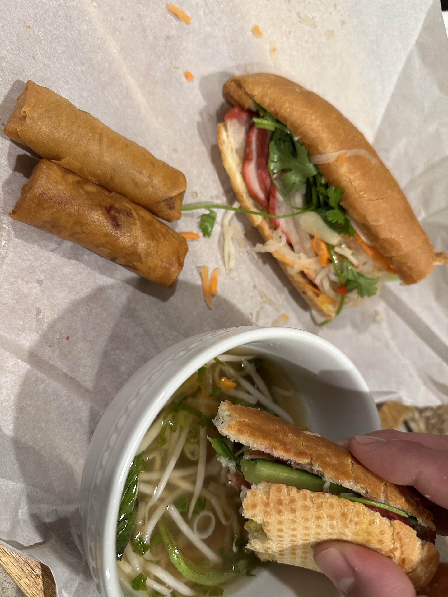 Ā Ā Ā Read moreItās delicious! I normally buy this once a week to treat myself, and my family, and let me tell you, the food is incredible! I high recommend to just trying everything. Iām in love with the pho beef and I normally ask for extra beef and make sure to add all of the toppings that they provide: bean sprouts, mint, cilantro, lime, everything. I also add some chili garlic sauce, like the āHuy Fong Chili Sauce Vietnam Garlic.ā I also adore the Banh Mi BBQ Pork and the Banh Mi BBQ Pork Char Sui! Order a side of pho broth so you can dip the sandwich before you take a bite. It really elevates the flavor! Also the egg rolls are addicting. You think youāre going to only want one or two but no. Itās more like 4 per person, lol. I have included some...