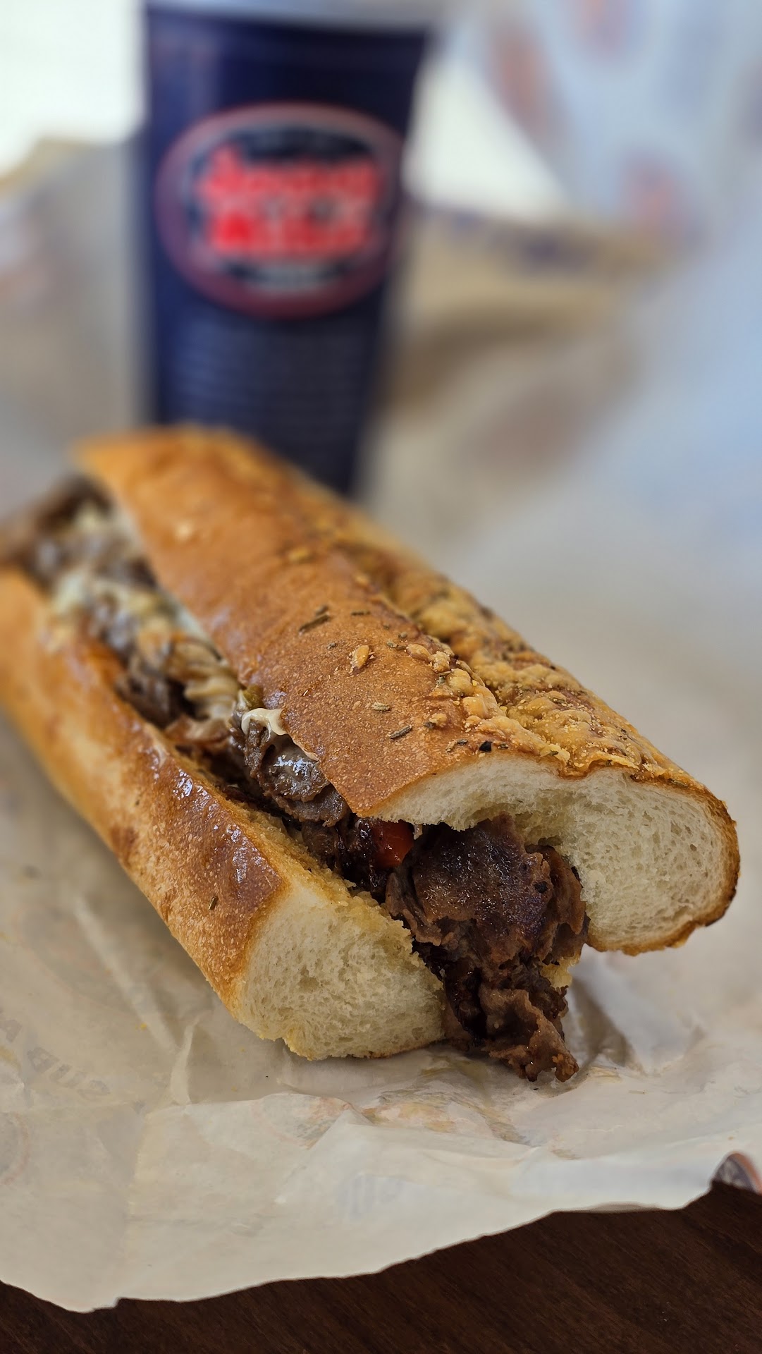 Read moreThis was my 1st time at Jersey Mike's. 1st off the place is small compared to the restaurant Carrows that occupied this restaurant before. Next it was very warm inside, it was 113 degrees outside. We got our food to go because it was so warm. Now we ordered 2 Mike's Philly cheese steak sandwiches I've never had a Philly cheese steak sandwich except for the ones I make at home. The steak was tender and there was plenty of it next the cheese was all melted to perfection the onions and bell peppers I felt like I wanted more but the real star of the show was the bread. I want more bread. I can't make that at home. So for affordability I'm going to subway but when I want to splurge and treat myself it's...