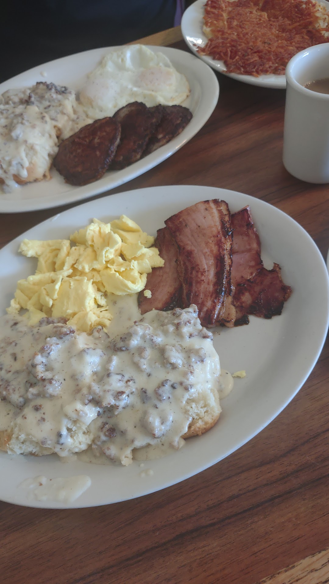 Read moreThis is my second time at Junior's Cafe. My favorite dish is the biscuits ad gravy. The biscuits have this delicious subtle sweetness to them that merges perfectly with their homemade white gravy. It is a meatless dish, which never happens (vegetarian). You can add meat to it for an additional uncharge. The gravy and biscuits are the best I have had so far in life. I combine it with a side of hashbrowns. The tea was freshly made. Junior is on hand and welcomes you with a smile and sense of family.