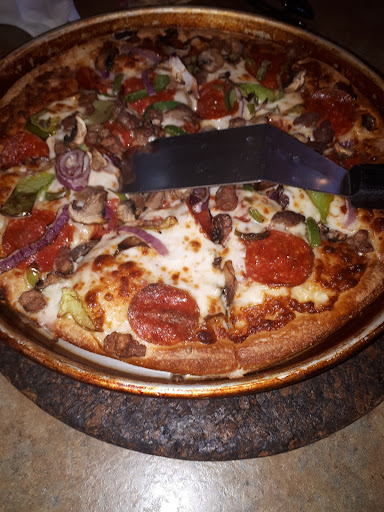 Read moreI had lunch here today with three friends. We ordered three drinks, a glass of water, a medium thin, crispy crust pizza, a supreme pizza and we all had the salad bar. The salad bar was very sad. I think all the items were left over from yesterday. The lettuce in the Cesar salad was wilted and brown. The cherry tomatoes were soft and mushy, the sliced cucumber was limp and watery and the chick peas were soft. Terrible! The thin crust pizza was good but the supreme pizza was just ok...... The cook did something strange or different to the crust and it tasted very different from the other times we've ordered it. We had a hard time getting our waitresses attention for soft drink refills but once we did she brought them quickly. This Pizza Hut could do with a make over, which it hasn't had for 20 years. It is very dark, drab and run...