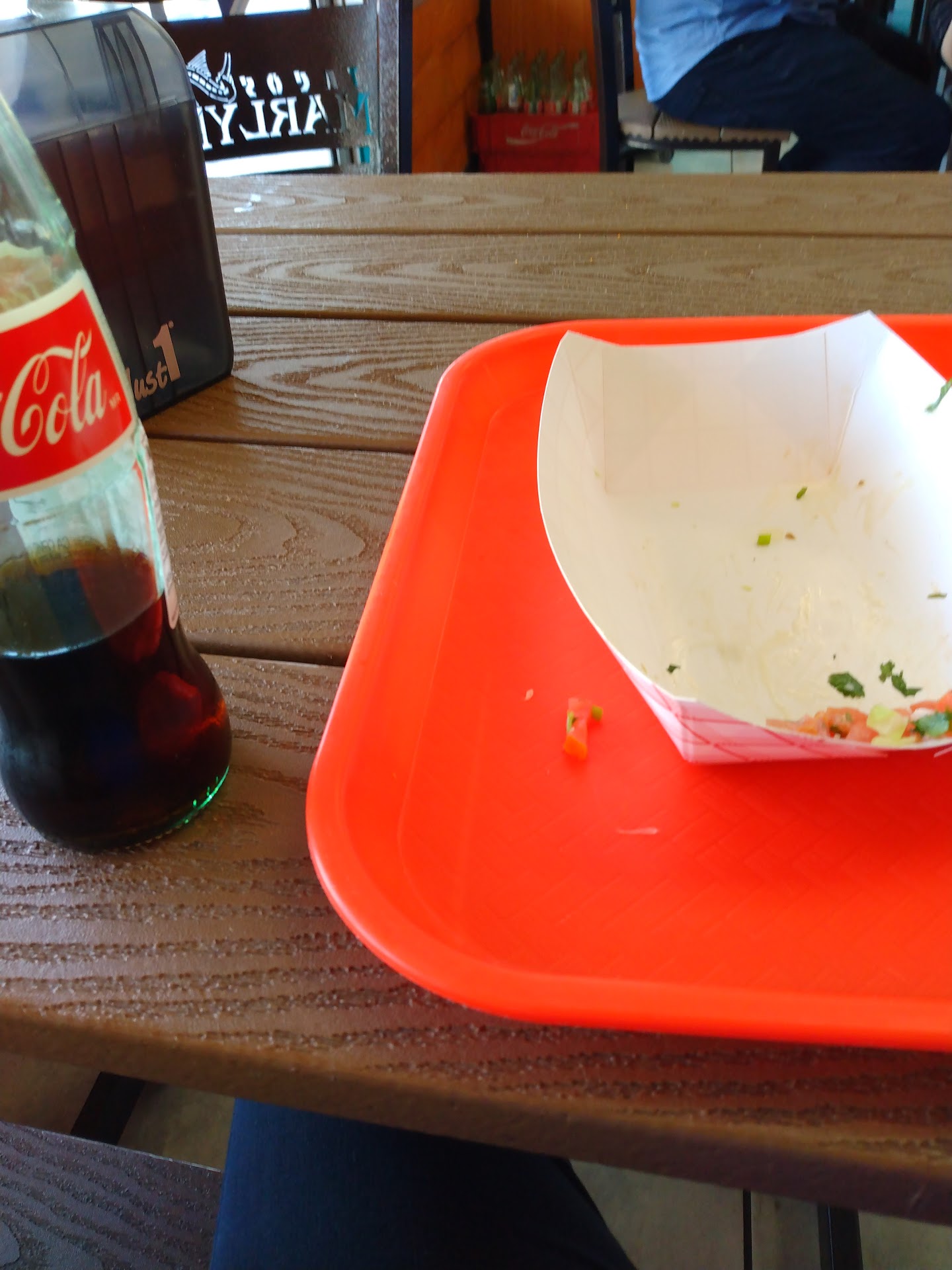 #accessibility Photo of Glass Bottled Coke and an empty tray... because the food was so yummy I forgot to get a pic....