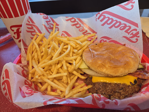 Read moreStopped at the Freddy's in El Dorado, KS. about mid way through an 800 mile drive to Texas from Iowa. Cannot say enough about the friendly staff, cleanliness, and yeah ... excellent food. My wife and I both ordered the Double Bacon Cheeseburger meal with fries and soft drink. The place was packed on this Sunday afternoon, and our food was ready for us in a matter of minutes and was served piping hot.