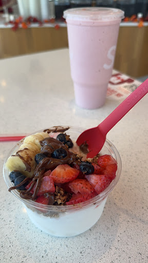 Awesome place to get your favorite flavor of smoothie treat, and it's in a healthy recipe. Friendly staff, in a bright, clean, open environment. Their Smoothie bowls are fantastic for a healthy light meal, with a variety of fruits and berries, topped with granola or many other choices of ingredients. They customize everything to your likes, and offer "enhancements" for improving heath , immunity, energy, etc.. Check out their app for the full menu choices.