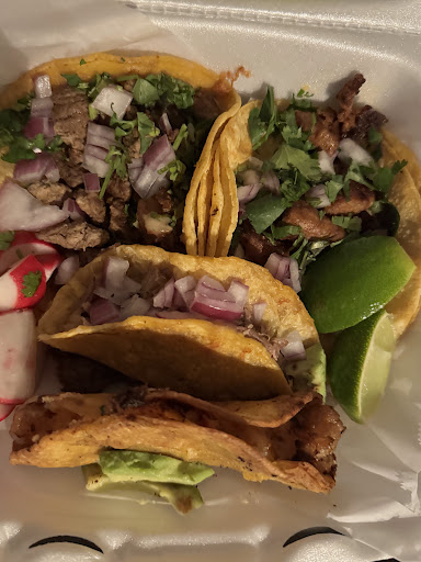 I don’t haves favorite. The shrimp and birria had a nice crunch. The adobada had pretty good flavor but the pieces were kinda big so there wasn’t a lot of meat. There was only 3 pieces of shrimp. The asada and birria were okay.