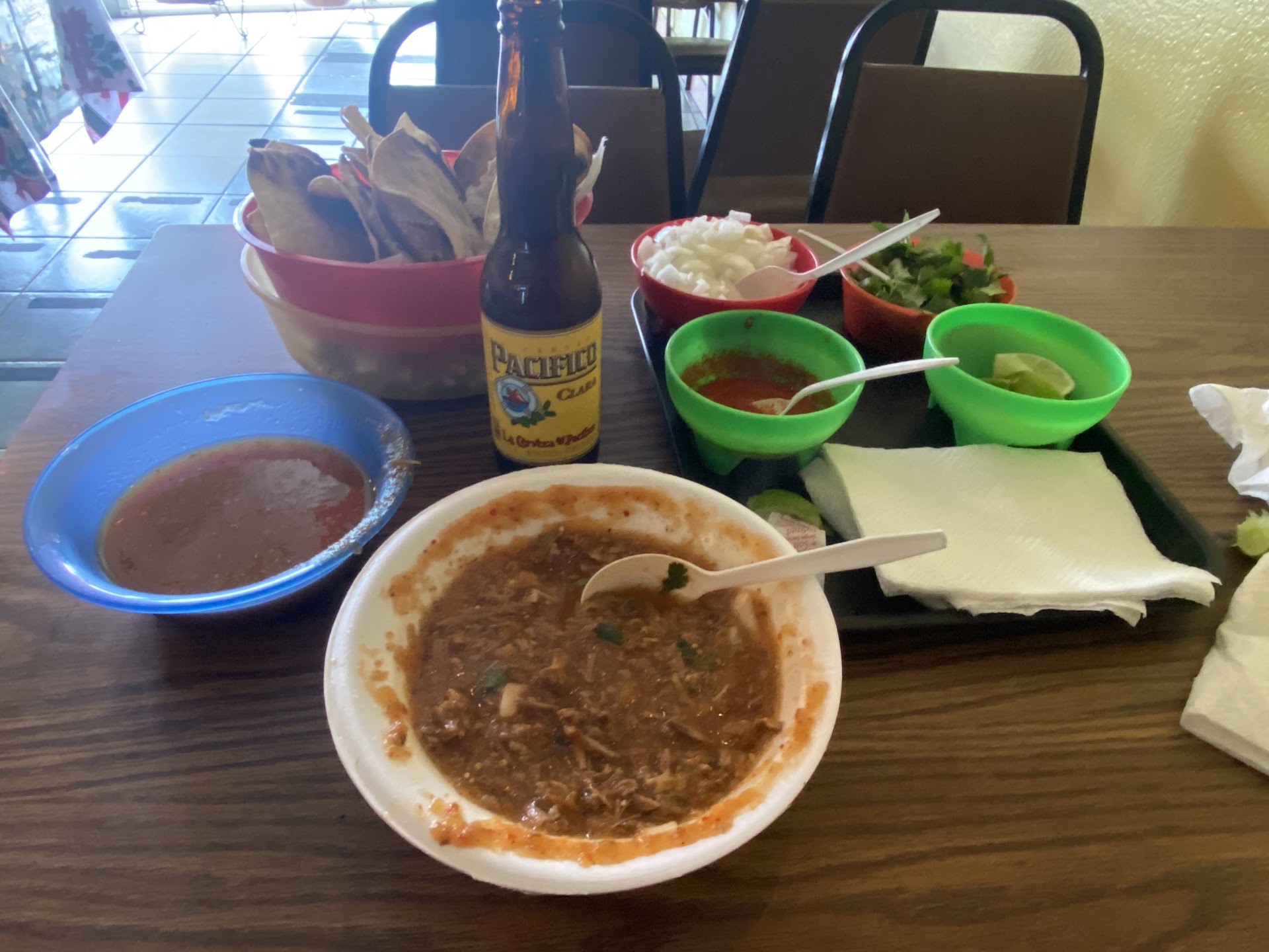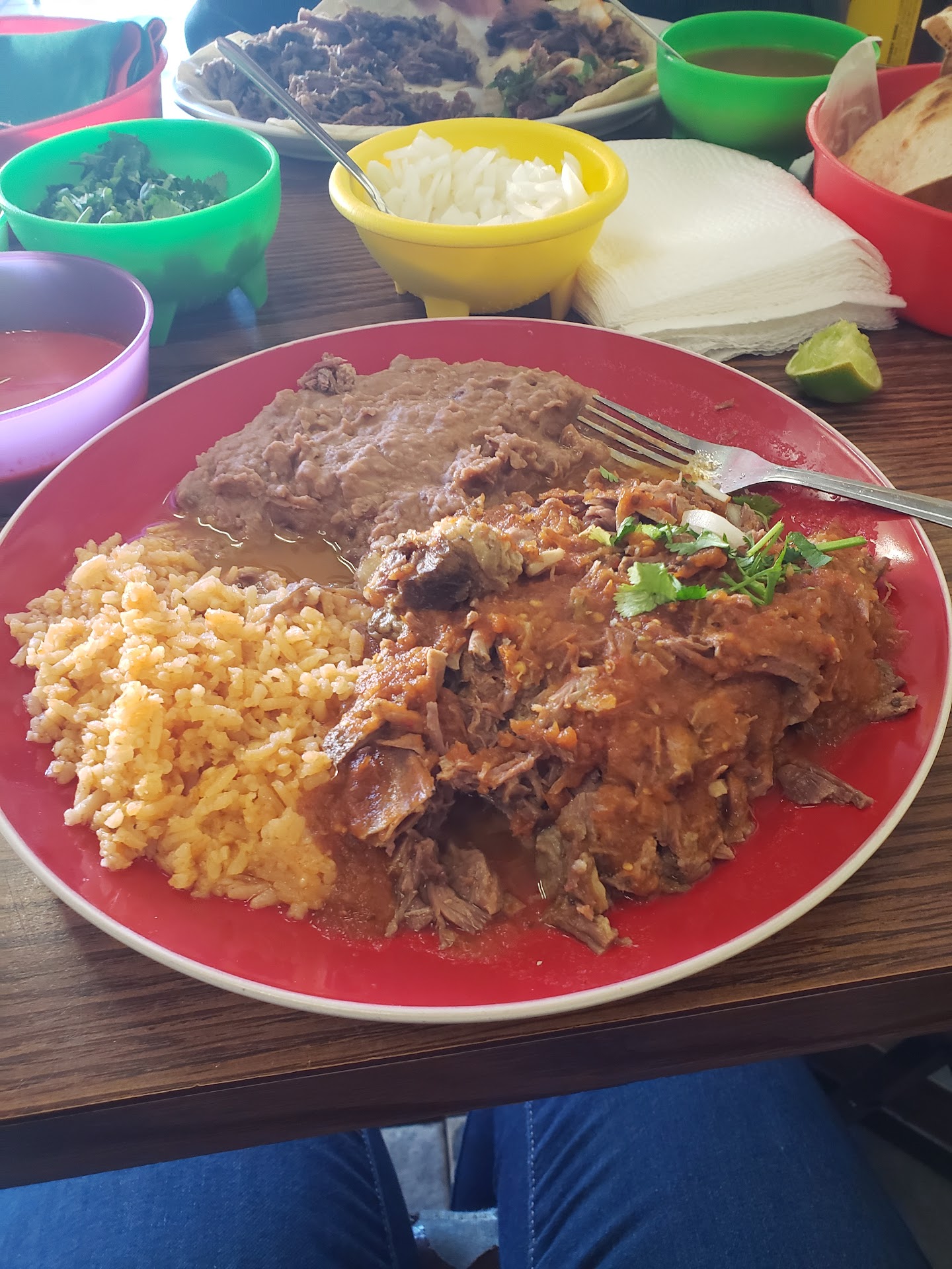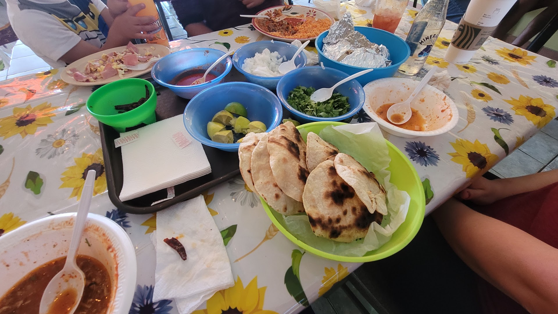 Read moreFeels like you walked into a cenaduría, plastic tablecloths and all! Tried their BIRRIA DE CHIVO. Tasty. The salsa is hot. I loved the tostadas caseras. First time I've seen that in LA. Basically grilled tortillas. No oil. No salt. All crunch. Perfect for dipping into the tasty broth in your bowl. Bring CASH ONLY.