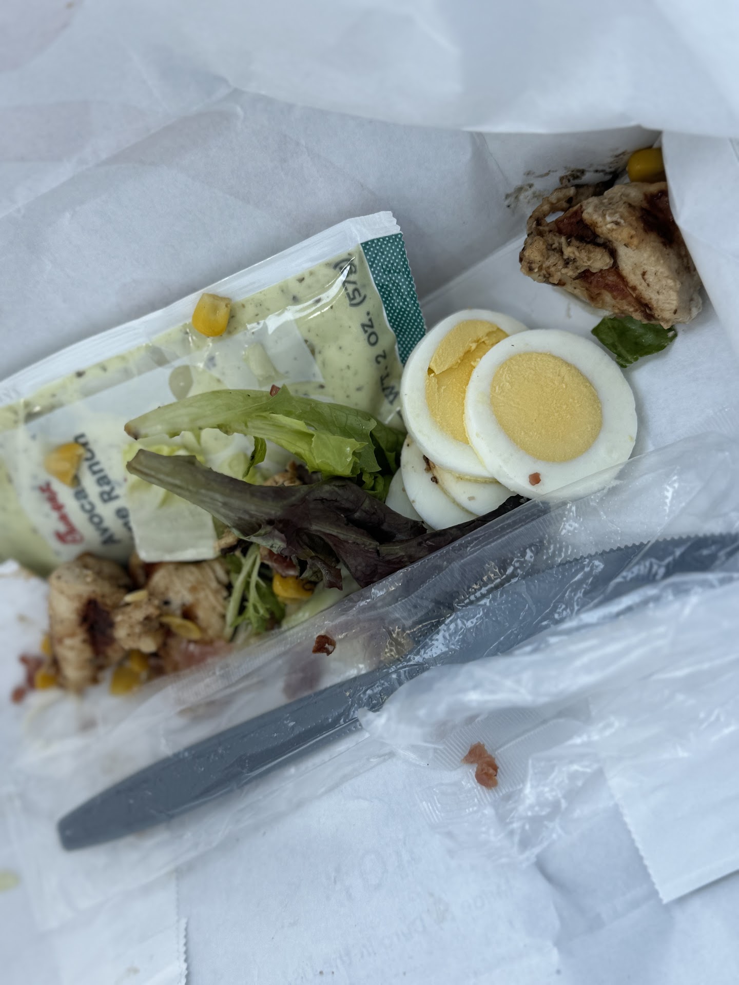Before I drive off, I like to check my order . When I opened my bag, the food looked just as bad their attitude. Instead of taking their time to lecture me, they could’ve taken the time to make the food look presentable . Whatever the case, I don’t think they noticed the container was opened and some of the food has spilled out.