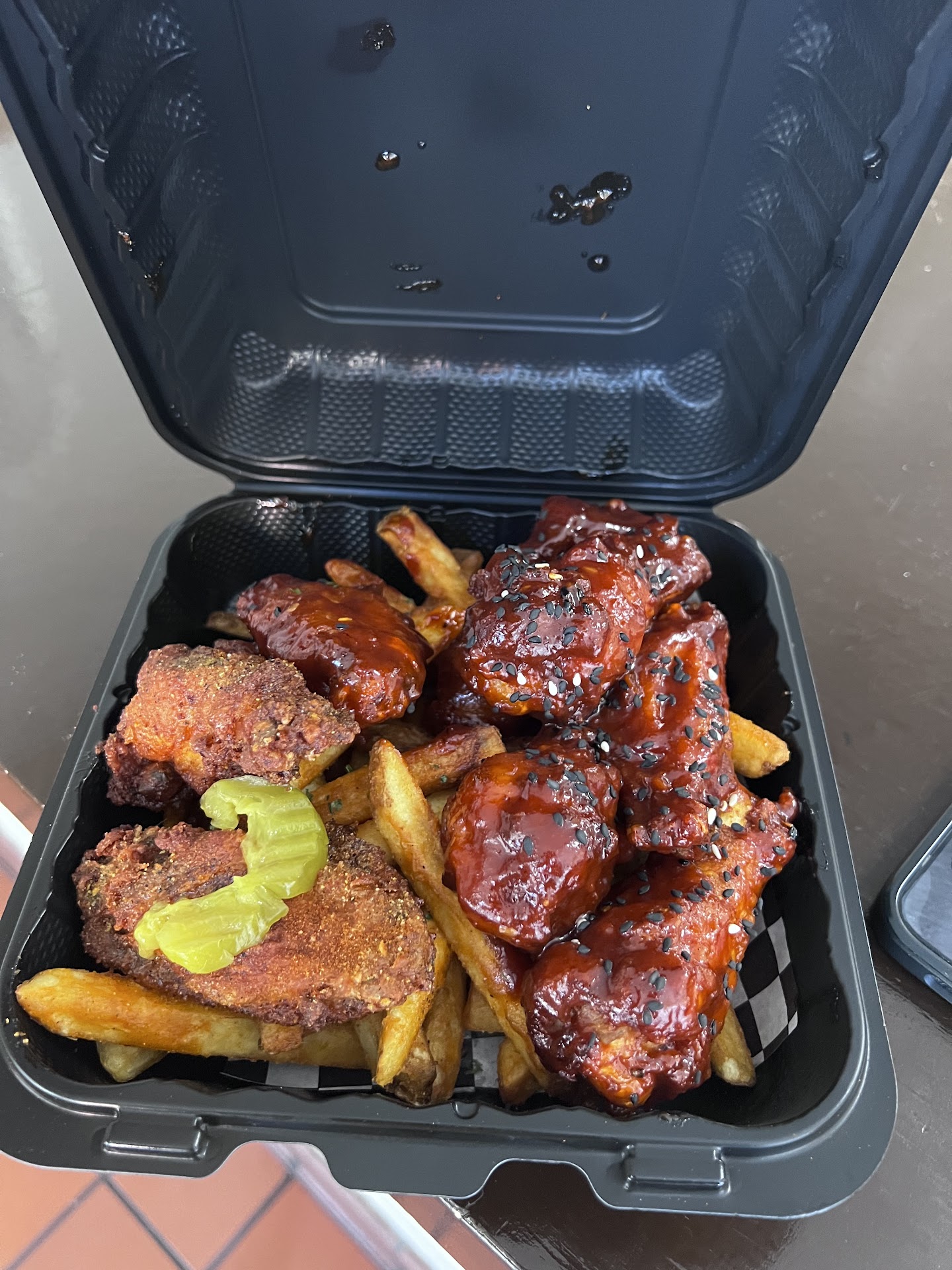 Ā Ā Ā Read moreBETTER THAN WINGSTOP!! The owners/chefs are so kind and helpful when trying to decide what I want to get, heās very generous and humble. The food is phenomenal believe me when I say it nothing compared to wings stop and their unflavored &dry wings. They put thought in those wings and in their food Iām general Iāve also tried their sliders and pizza and of-course they are top notch. Anyways GO SUPPORT THEY JUST STARTED OUT also theyāre next to a bar and serve food for the bar. I got the Korean sweet and spicy.