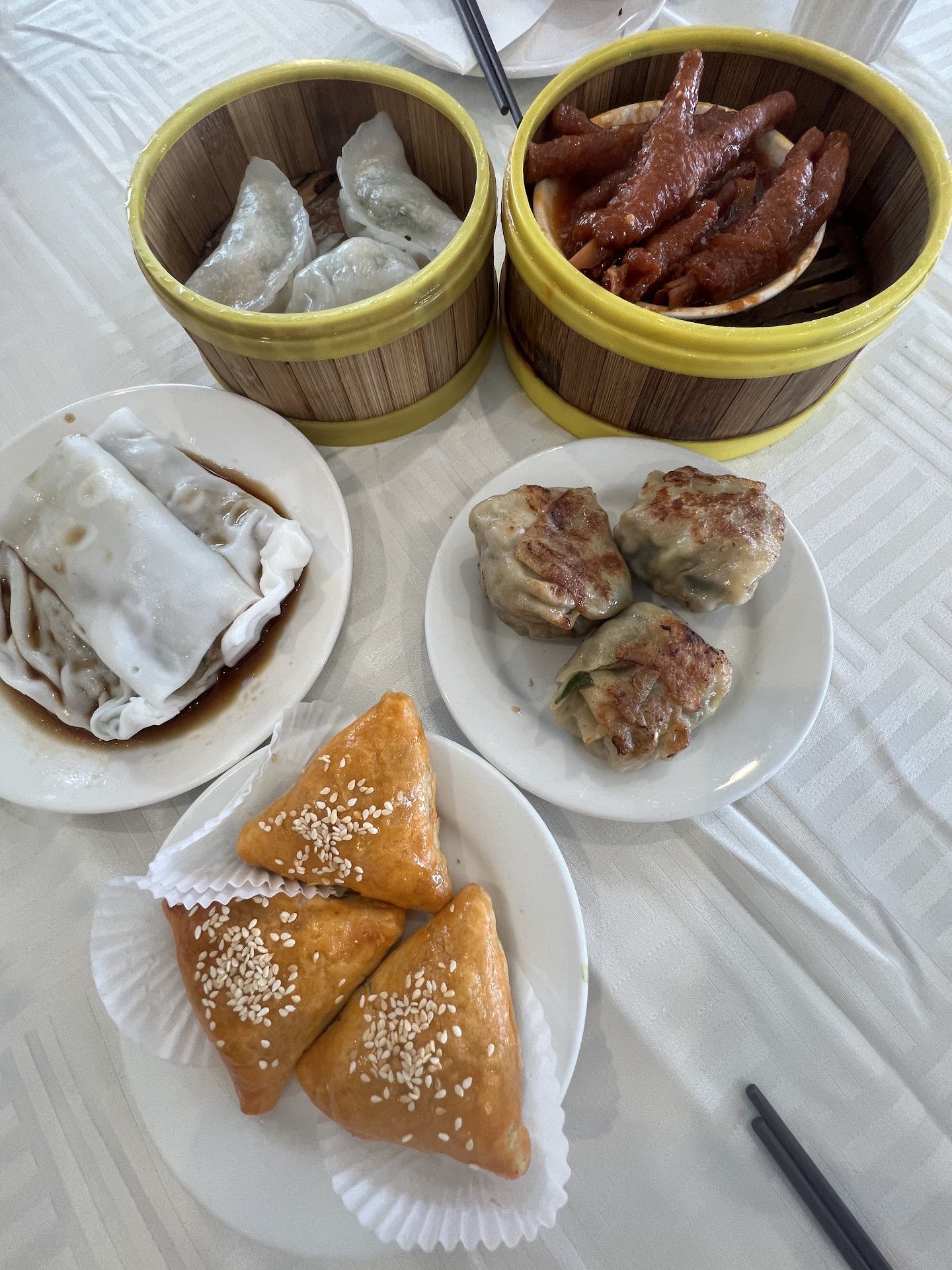 My favorite was the Gao Choi or Chive dumplings. Really delish! The Hargow was decent and not over steamed. The chicken feet tasty, although a bit too soft. The Bbq pineapple bun was good, with a lot of filling, not a lot of air like some places.
