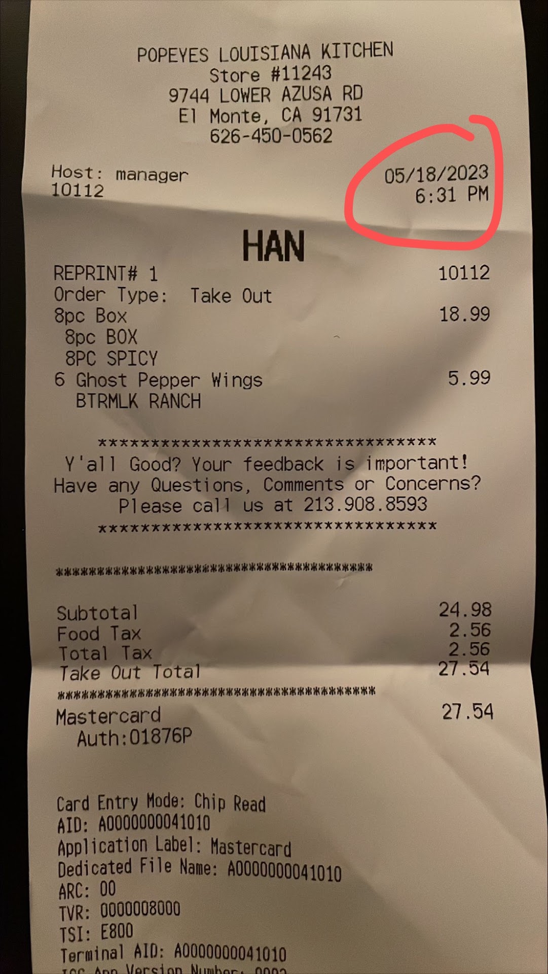 I tried asking for my order status after 30 mins of waiting. This is when an associate took my receipt and start preparing my order. Looks like He didn’t print one for his own working progress. I saw this associate packed my 8 pcs and left them on the counter, and told me that he is just waiting for my Ghost Pepper wings.