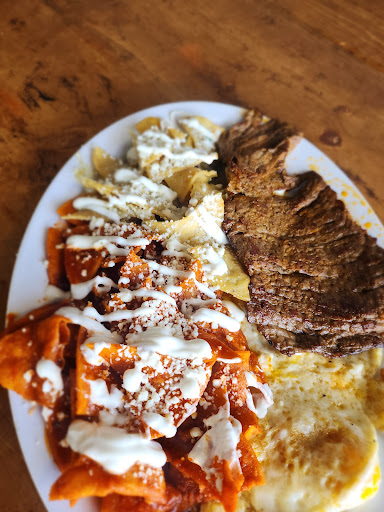 10/10 Will be back for more. Walked in the door and was warmly greeted. I ordered the mamalona chilaquiles and I was asked which sauce I’d like. I paused for a long time, apologized for being tired I was just about to have breakfast at almost 1pm. I was offered a half and half sauce order. Before my food came I was offered a cup of coffee on the house to help perk me up. There are no regrets on the 50/50 Chile, They were both delicious and the very healthy serving of food was filling. The café de olla was delicious. I’ve never had it but I think I imagined it tasting more forward and strong and probably have avoided it for longer than I should have this one was very pleasant to drink with a splash of cream chefs kiss I’m grateful. The food was again perfect the steak was made medium and that’s exactly where this cut at this restaurant should be (I’m a rare steak person) but this was good all the way through. The pepino agua Fresca was also * chefs kiss* the right amount of lime/pepino/azucar ratios. The kind of drink that reminds you of summer setting in. Not too sweet and not too watered down. The price is average and I think the quality, atmosphere and portion for my meal was on par for what I expect to pay. $26.39 for my meal. If you’re offended by the pricing here go to king taco or a fast food restaurant. This place serves good food as fast as it can...