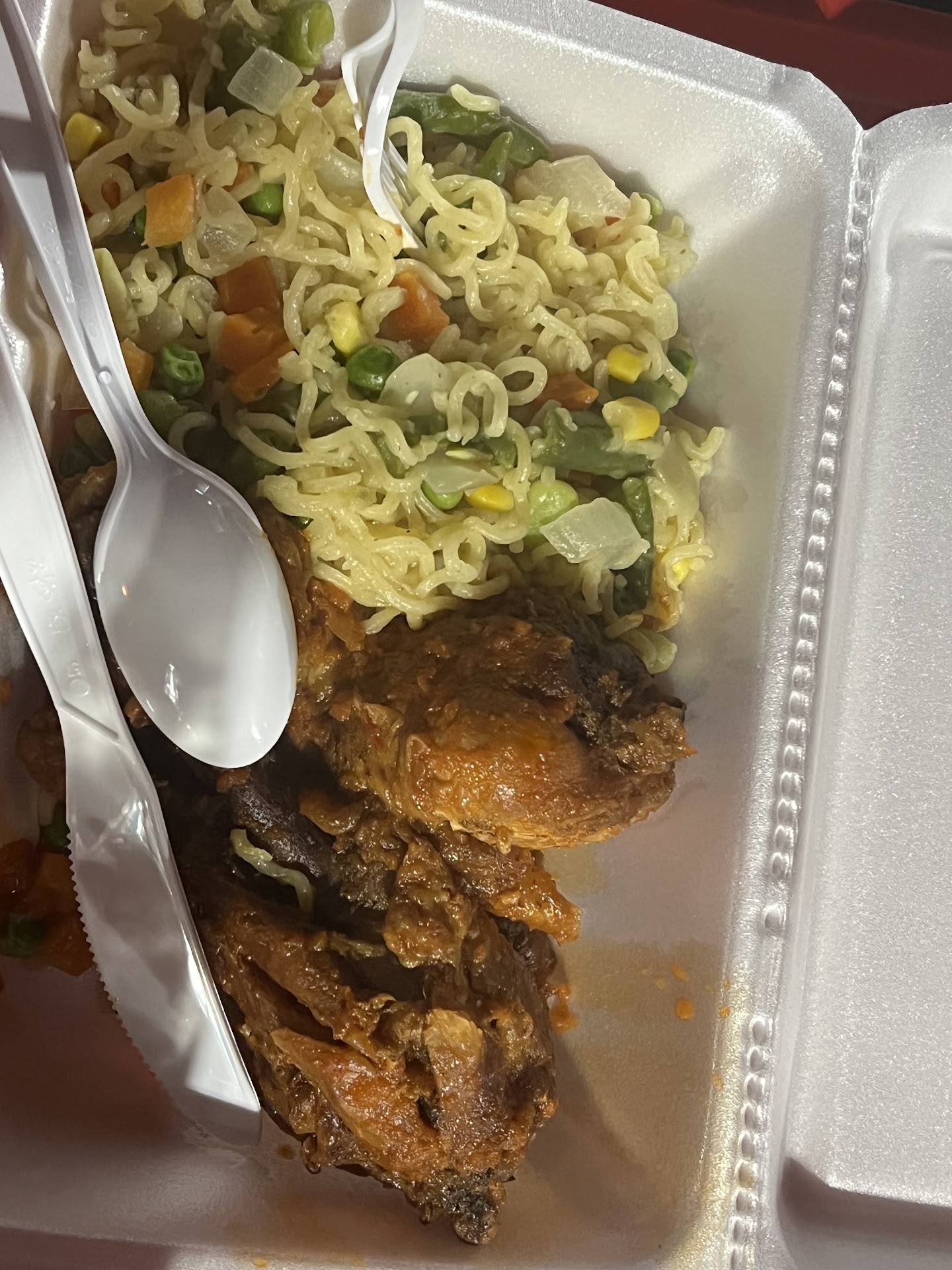 The assorted meat was simply anything they must have left in the fridge they just added to the food. There was what I recognized as "Isi ewu" (what's Isi Ewu doing in assorted), some other unidentifiable pieces of meat that came from a stale tasting red stew. Haba, it would have been better they said they didn't have assorted and I ordered something else.