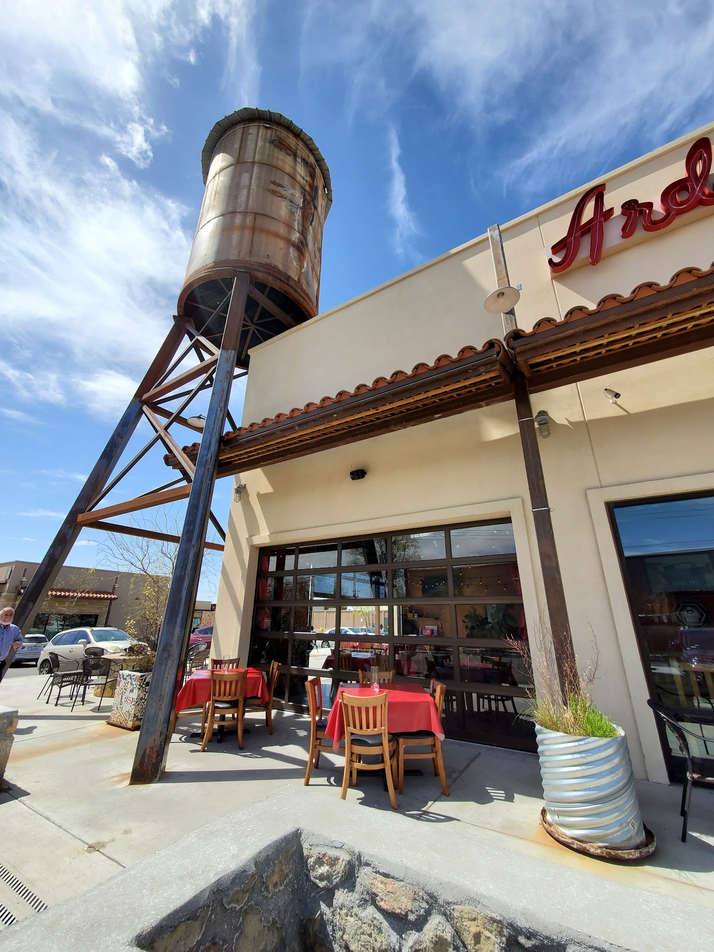 Read moreWe weren't in the mood for a night out, so we ordered pizza and went to pick it up. As a couple visiting El Paso for the first time, this location seemed way out there, particularly driving there at night. But the little cluster of nice restaurants we came upon were lovely: the area looked like a place in a European country, with outdoor seating areas, nice architecture, and nice outdoor lighting with a fire pit to boot. Ardovino's looked very nice. They had a large room that was basically"wall-less" on two sides, and a table of fifteen folks was eating there. We arrived early and waited at a nice, small bar. Everyone was friendly. Ok, the pizza? Thin, crispy crust which was a plus, ok red sauce, fresh toppings. All in all a quite good pizza, but not off the charts. I'd say the whole experience would be enhanced by eating at the restaurant, which...