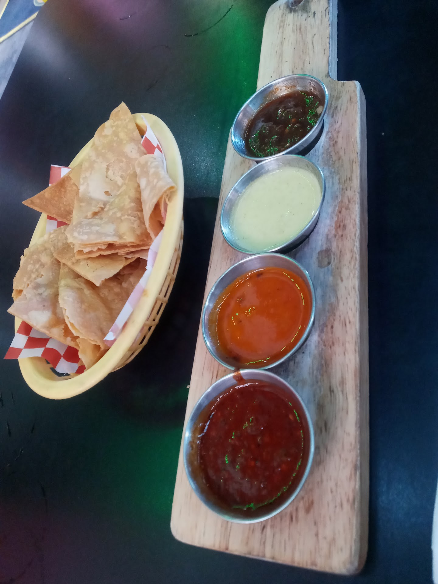 Next they brought us 3 kinds of salsas with some stale tostadas. All 3 had no spice which sometimes happens with the batch of chillies used but the salsas also had no flavor. This is a bad sign at a Mexican restaurant.