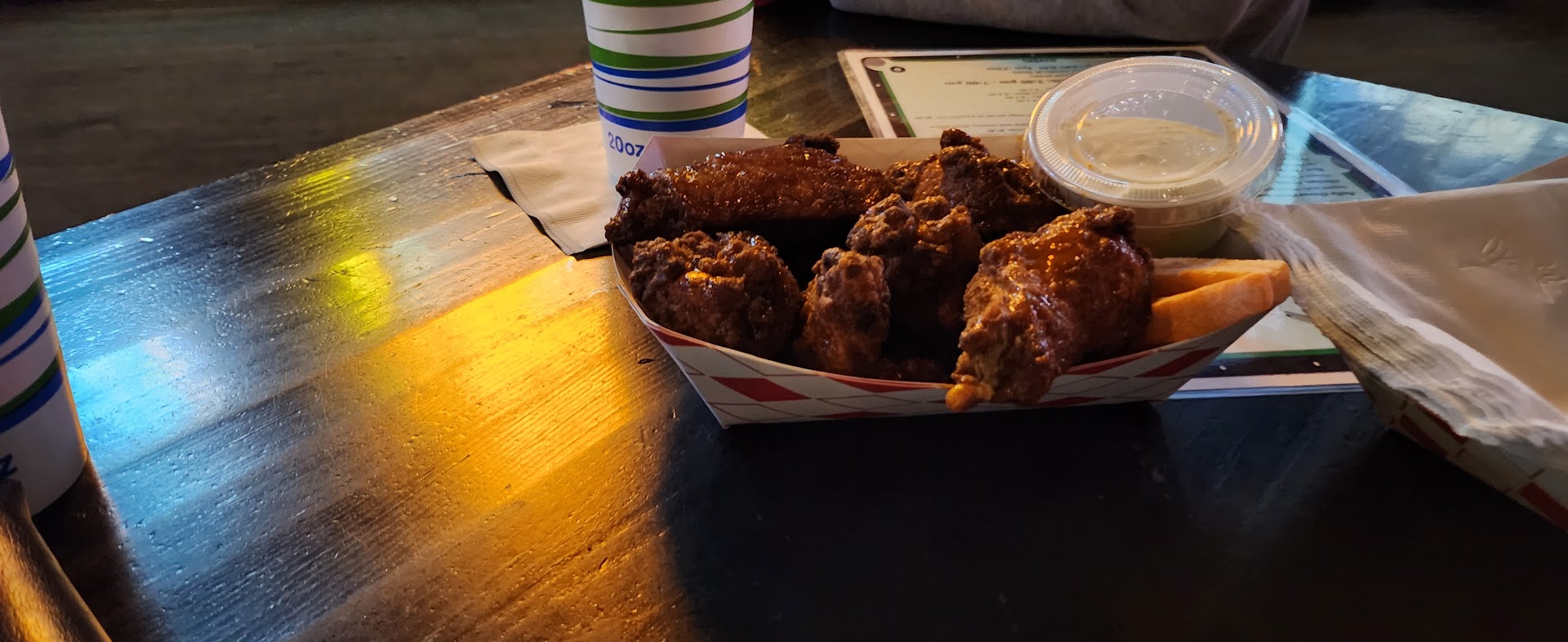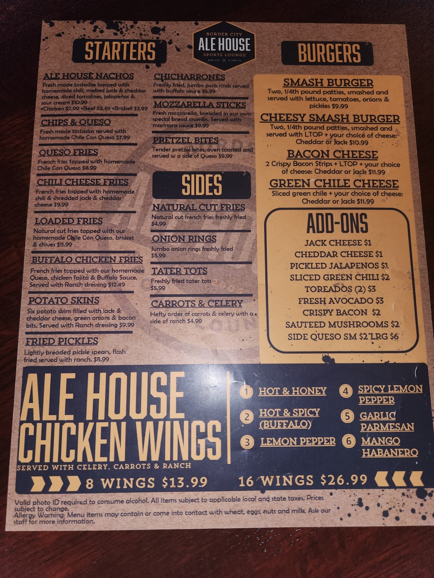 Border City Ale House is my favorite place to go for two things: sports and wings. I first went here two years ago with my father, who was visiting from Lubbock and wanted to watch a Texas Tech Football Game. They turned on the big screen to the Tech game for us. I also watched the Super Bowl here, and several games from the recent World Series, and had a great experience each time. It's a friendly, neighborhood bar kind of atmosphere that I really like. I've had a number of good waitresses but Becca is the best, and we only sit in her section now. And the wings! Who would have thought a local sports bar like this would have the best wings in town. The garlic parmesan wings can't be beat - followed closely by hot & honey and lemon pepper. My friend and I have made Border City Ale House our go-to place for dinner after our club meeting every Tuesday. We start to salivate in the afternoon already thinking about the wings. I don't know how they do it, but they are amazing. Better than Track One. I spar all the time with a work colleague who claims Track One wings are the best in town - I tell her their wings are okay, but Border City Ale House has the best wings in the Border Land, no question about it. And other food is good, too, including the Cuban sandwich. Can't wait for the Cowboys-Eagles game - Becca told us there is an Eagles fan club who watches the games there, and it can get rowdy! Sounds fun. GO COWBOYS!!! And GO BORDER...