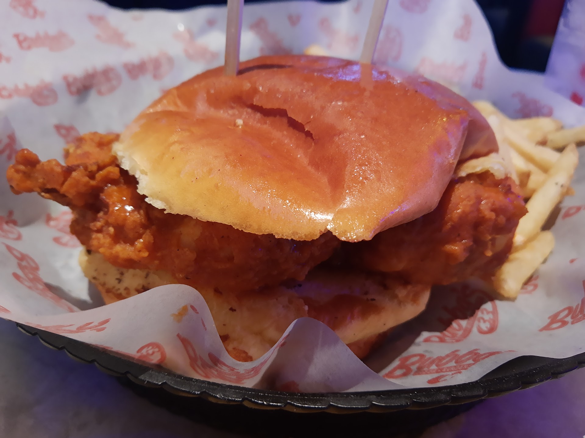 Read more1st time visit on Sunday right at opening time of 11am. Upon walking toward the doors the 1st thing I noticed was how loud the music sounded. Inside the music seemed quite loud in my opinion and I have 2 teenagers who don't project their voices so it was difficult for our server to hear what they were ordering. Our server apologized for how loud the music is and mentioned how a lot of people ask for the volume to be lowered but management cannot because "it's company policy". Really? Having music so loud that you can't really have a decent conversation without having to shout over the music and other people's shouting is company policy? Alrighty then! 👎🏻 On to the menu. It has a decent array of appetizers, salads, pizza, burgers, sandwiches and dinner entrees. I, don't really drink alcoholic beverages but the drink menu looked quite colorful with their variety of cocktails. I may give one a try if I decide to come back some other day. My meal consisted of a chicken tender platter with a side of fire fries and mac & cheese. Maybe because this is their rush hour they have to have some of the food prepared in advance and I could tell the fries had been sitting around for a bit as they were barely warm but the "fire" seasoning gave them a good tang & kick. The Mac was a just too bland for my liking. The breadcrumbs on top is what had the seasoning but the pasta itself was unfortunately tasteless and my son agreed. Otherwise, the chicken tenders were tasty, juicy and a good size. My teens ordered a plate of wings and a Stromboli. They didn't have much to say about their food other than it was okay. Not sure if I want to come back simply because the music is annoyingly loud and started giving me a headache. Don't get me wrong I enjoy listening to music especially what was playing but it was just too loud to enjoy a meal out with my kids. Give this place a try and see what you think. You may enjoy the loud atmoshphere and food better...