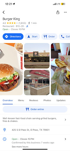 Read morewent in with my family to a VERY crowded and dirty establishment. It is expected though, due to the location, I guess. My family ordered the whoppers, and I a "grilled" chicken salad. Upon ordering I asked do you have light ranch? Yes was the reply. after paying and waiting for 15 minutes, the order came out, and I was told they only have italian. then I was handed a knife and spoon...for a salad. May I have a fork? We don't have any sorry. I guess I could have eaten it with my hands, only I couldn't wash them because when I entered the bathroom, there was more urine on the floor than in the urinal, and no soap to wash your hands with.