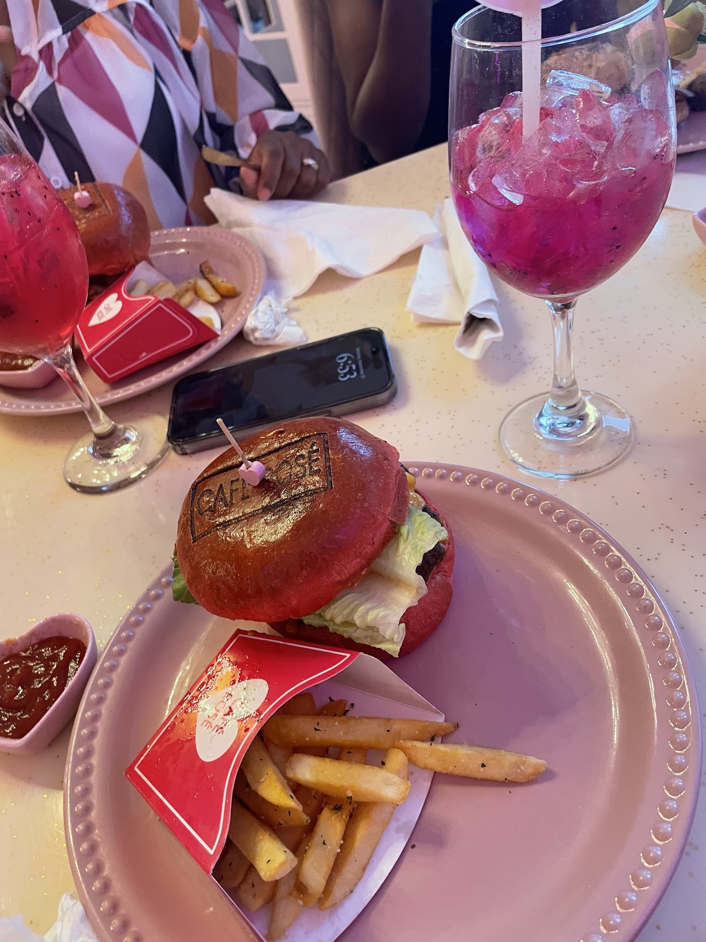 Read moreIt was expensive for what we got. We ordered the turkey sandwich and hamburgers. The Turkey sandwich included 2 slices of lunch meat, some undercooked bacon, avocado, and roasted tomatoes. The bread was good, the roasted cherry tomatoes were delicious, but were not cut up, so they would not stay on the sandwich. I recommend the fruit as a side instead of potatoes. Be prepared for all your food to be pink, even the hamburgers. The drinks, (2 different lemonades, a hot tea, and cappuccino) were watery. We ordered the special birthday cake, and it was pretty good -the best part of the meal by far. If you are going there for a celebration, I recommend the cake only. The server was kind and attentive, but only brought three plates to a table of 5 people (?). No menus in Spanish, but our server spoke Spanish, so it worked out. We ate at dinner time, (6:20 arrival), however, we were told that more than 50% of the restaurant was closed, leaving only 3 tables available for seating. There was another party there, so even though the restaurant was almost empty, we sat right next to them, which was odd. The atmosphere is cute, pink everywhere. I wish I had taken photos, because it does not look like the photos posted in other reviews (there is no tree, for example) They serve mimosas and other adult drinks, but I can't imagine going there with anyone over the age...